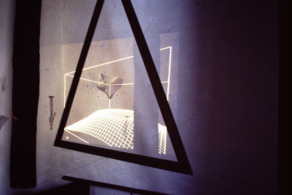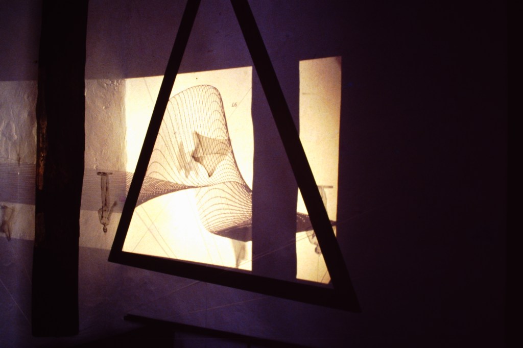 | 1990 Giovanni Carpentieri realizza l’istallazione intitolata “UN TRIANGOLO PER COMUNICARE”, Galleria “L’Eremita 1”, Calcata. Nella presentazione leggiamo: 1.Da un proiettore, comandato da una centralina, vengono emesse immagini che hanno una forma triangolare. 2 Le immagini attraversano, prima di giungere allo schermo, una forma anch’essa triangolare. 3.Una piccola parte dell’immagine viene riflessa da un elemento speculare 4.Un suono accompagna la proiezione delle immagini. L’immagine, dall’inizio della civiltà, è un elemento indispensabile alla comunicazione. Essa colpisce, affascina, convince, educa. In ogni momento siamo raggiunti da immagini che ci comunicano un messaggio. Il triangolo visualizza un concetto fondamentale della comunicazione: la interconnessione tra trasmittente, messaggio e ricevente. In senso più generale, il triangolo rappresenta anche il rapporto uomo-tempo-spazio. Questo triangolo, in dinamica telematica, sarà capace di assumere dimensioni sempre più ridotte fino a diventare, in una situazione di completa e totale fusione comunicazionale, un punto. La mostra viene riportata nella rubrica “IL TROVAROMA” del quotidiano “La Repubblica”. |