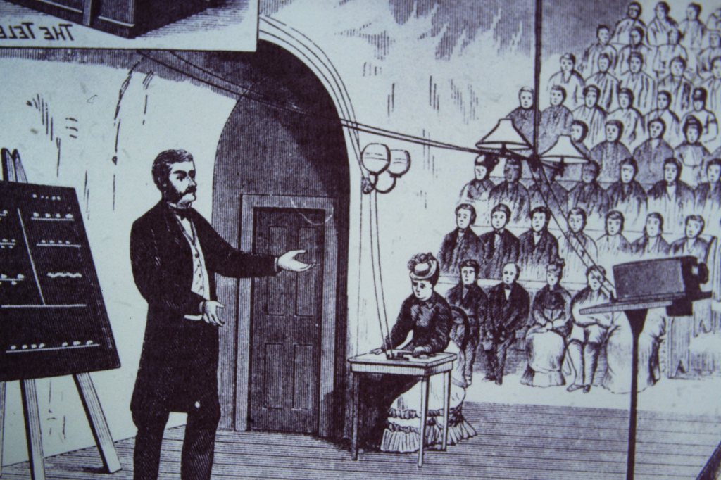 | 1989 Giovanni Carpentieri realizza l’istallazione dal titolo “SALEM-BOSTON”, in occasione del I° Convegno Europeo di Arte Telematica organizzato a Calcata da Giuseppe Salerno. Con un sottofondo di suoni, vengono proiettate su varie superfici in movimento, immagini prese da stampe e fotografie dell’epoca, degli esperimenti del padre di Alexander Bell sulla disposizione delle labbra, della lingua e del palato per l’emissione dei suoni, del laboratorio e delle macchine inventate da Bell, del primo disegno, fatto di suo pugno, rappresentante lo schema di realizzazione della sua invenzione, della conversazione, avvenuta nel 1877, tra Bell, a Salem e Watson a Boston ed, infine, dell’affermazione piena del telefono e del suo impiego su vasta scala. |