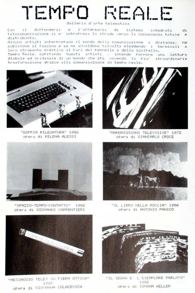 Il 13 settembre 1986 Giovanna Colacevich inaugura a Calcata “TEMPO REALE”, Galleria d’Arte Telematica, intorno a cui si aggregano gli artisti della comunicazione facendone, da subito, un riferimento internazionale per la nuova ricerca. Giovanni Carpentieri è tra questi.