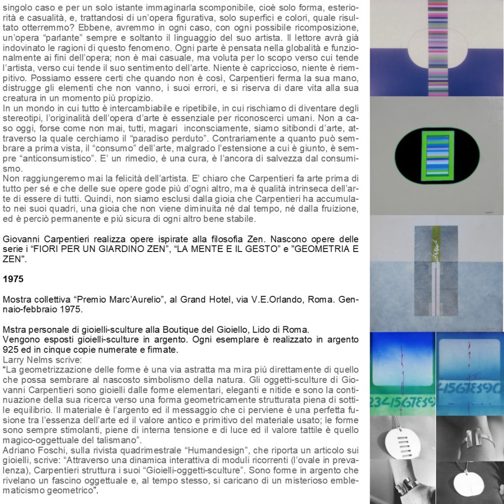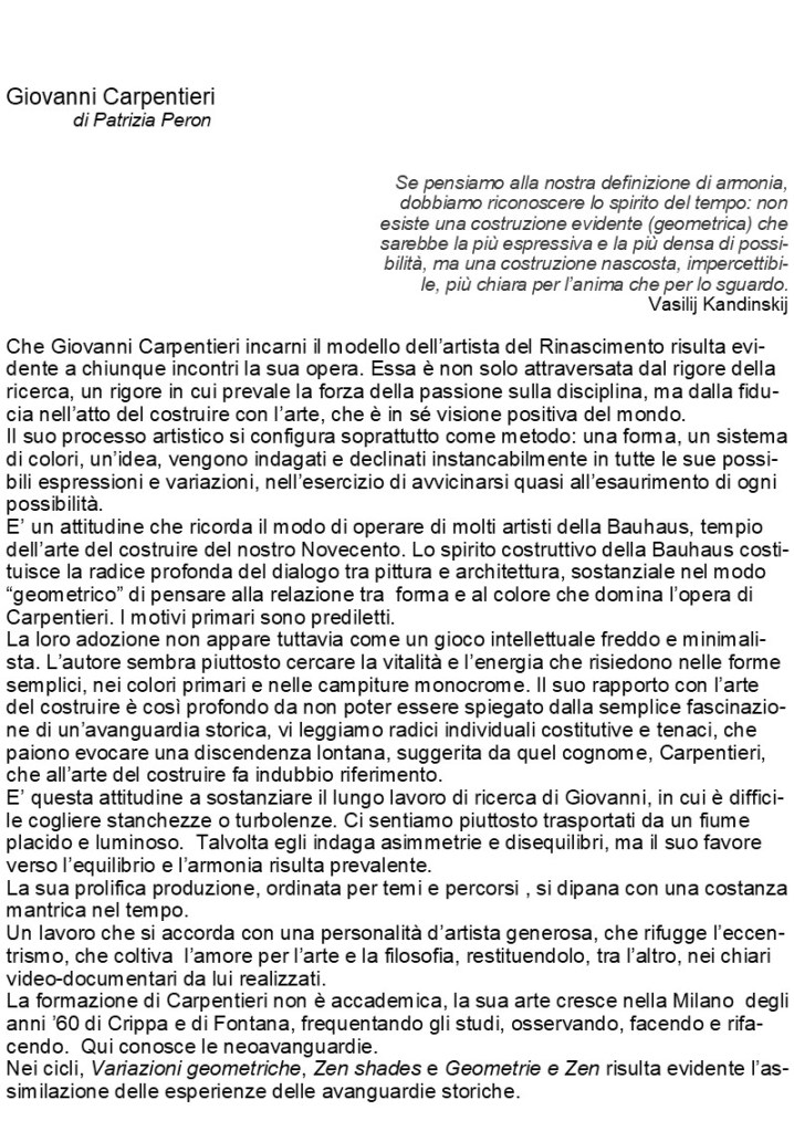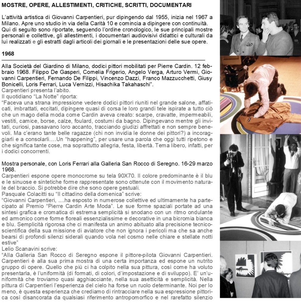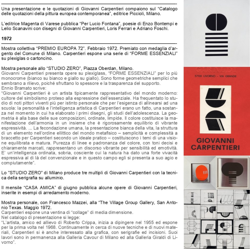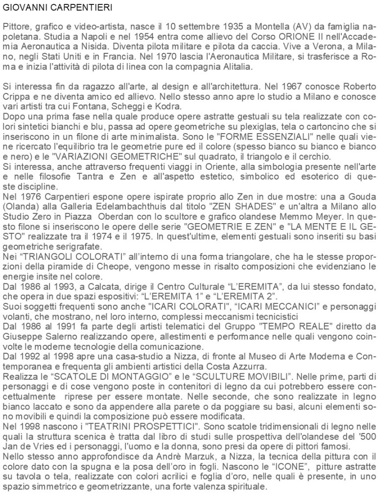 Giovanni Carpentieri. UN PERCORSO D’ARTE Mostre, critiche, opere dal 1968.