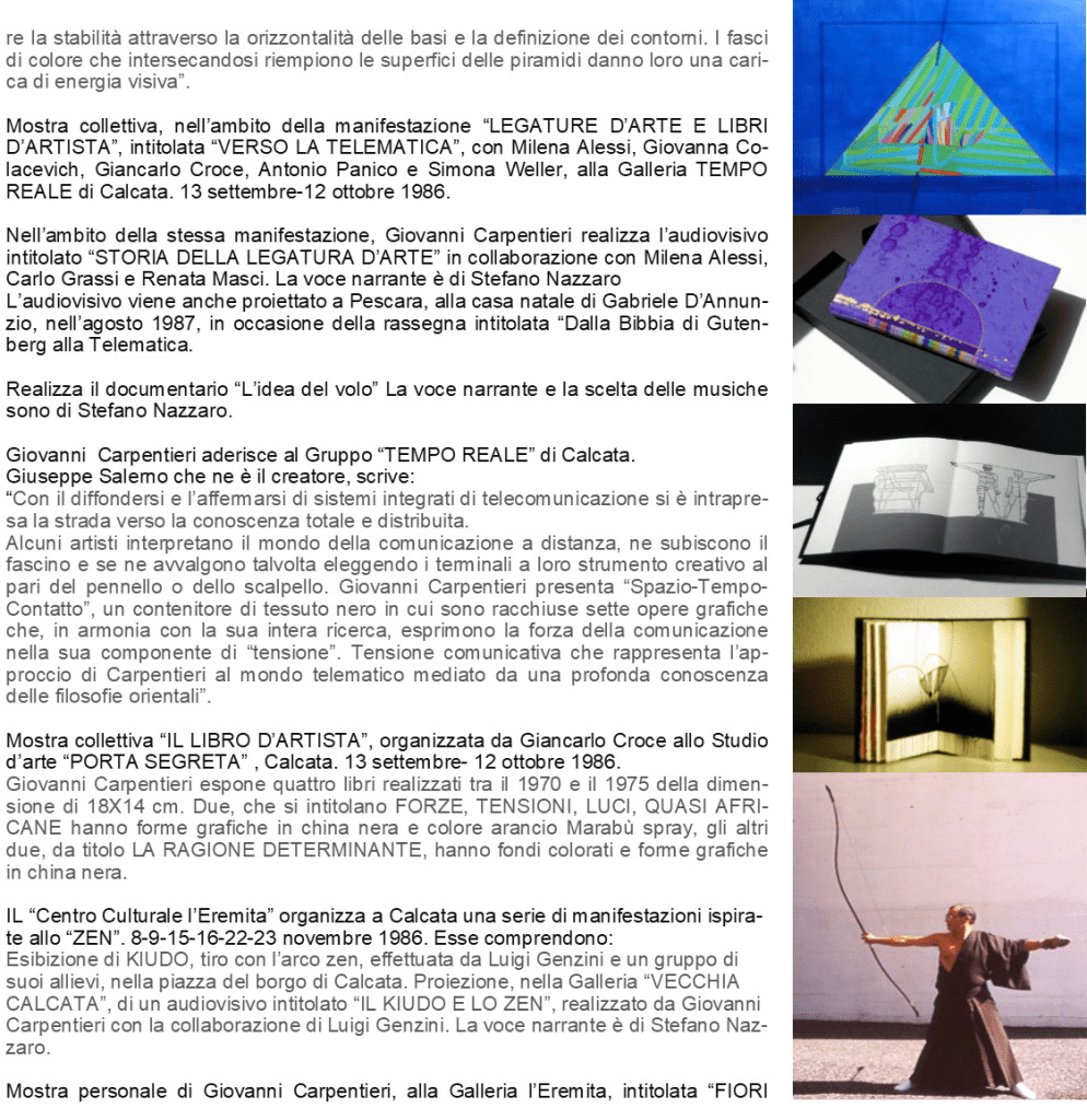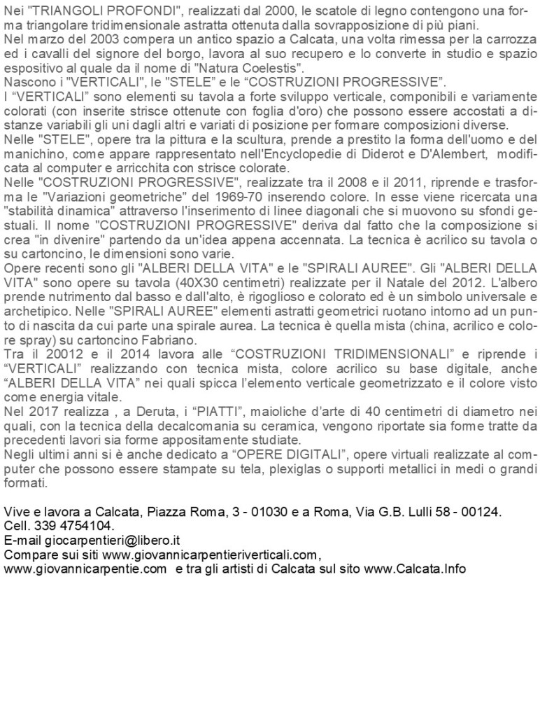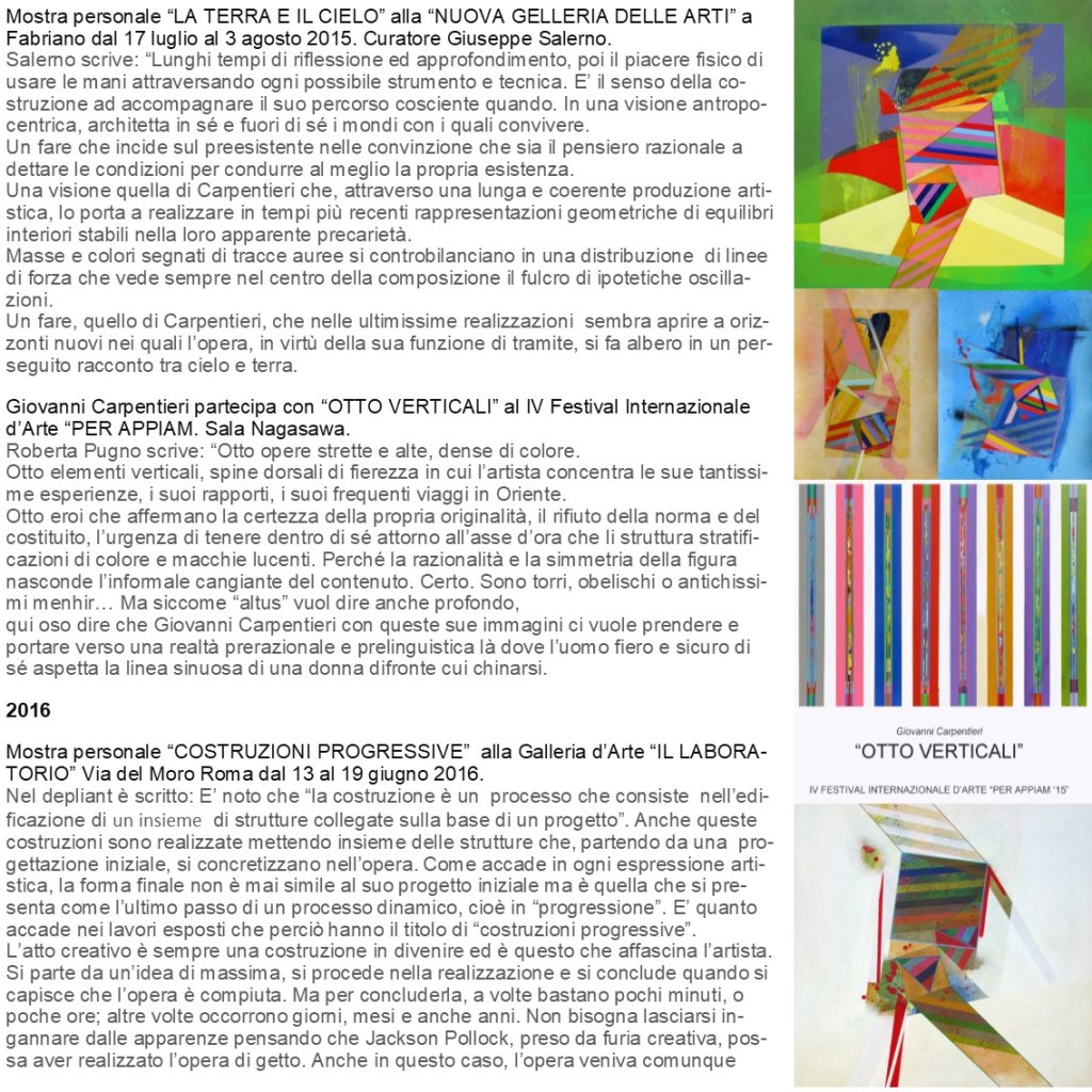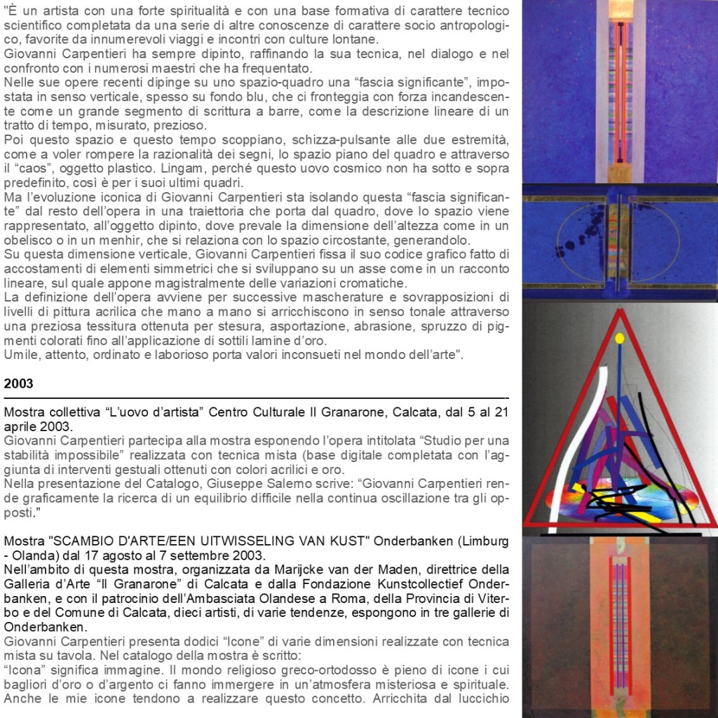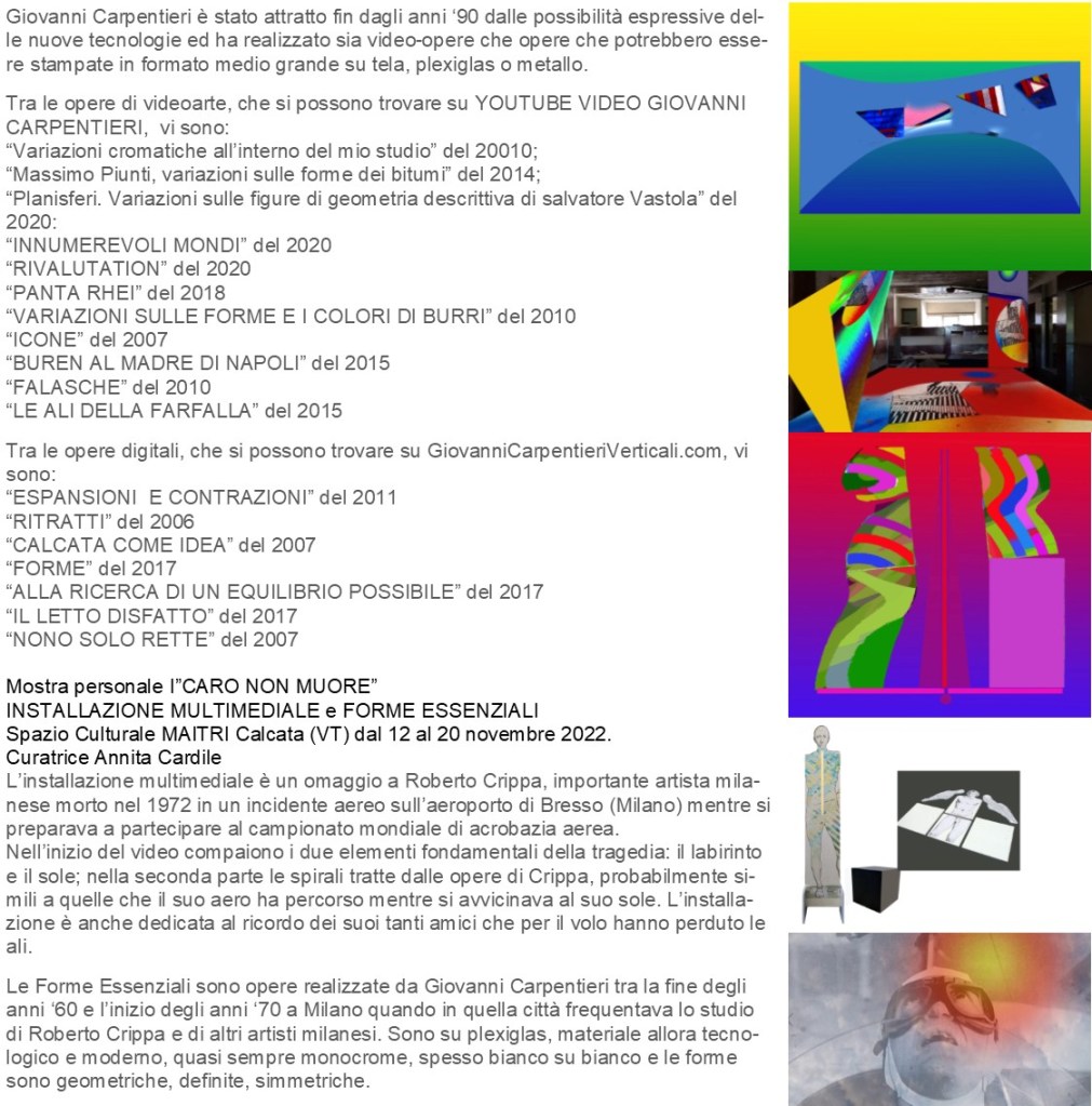 Giovanni Carpentieri. UN PERCORSO D’ARTE Mostre, critiche, opere dal 1968.