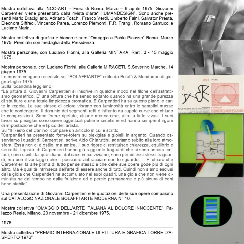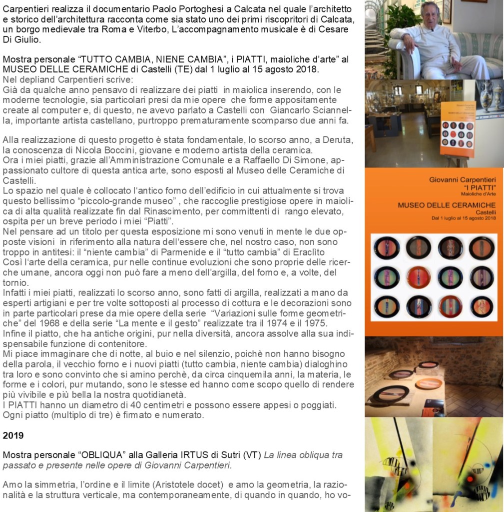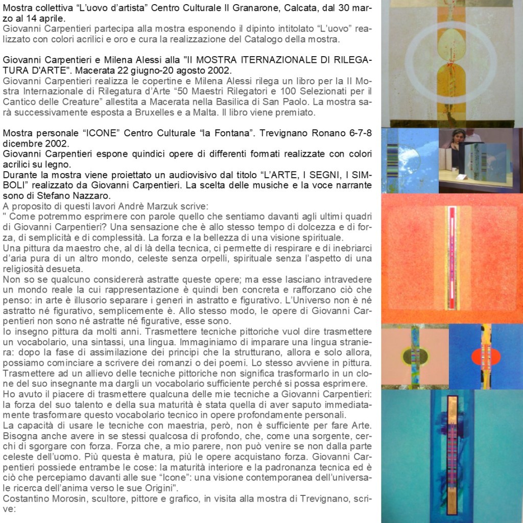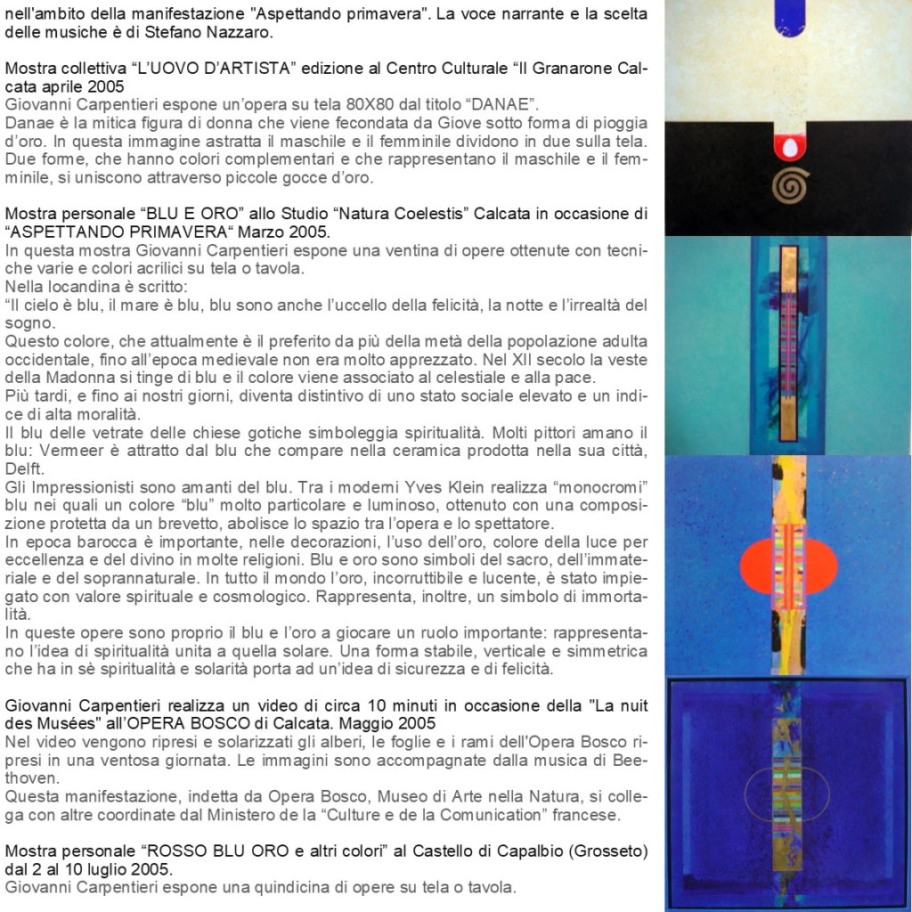 Giovanni Carpentieri. UN PERCORSO D’ARTE Mostre, critiche, opere dal 1968.