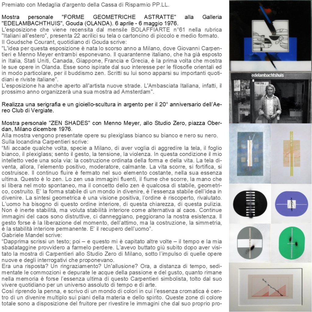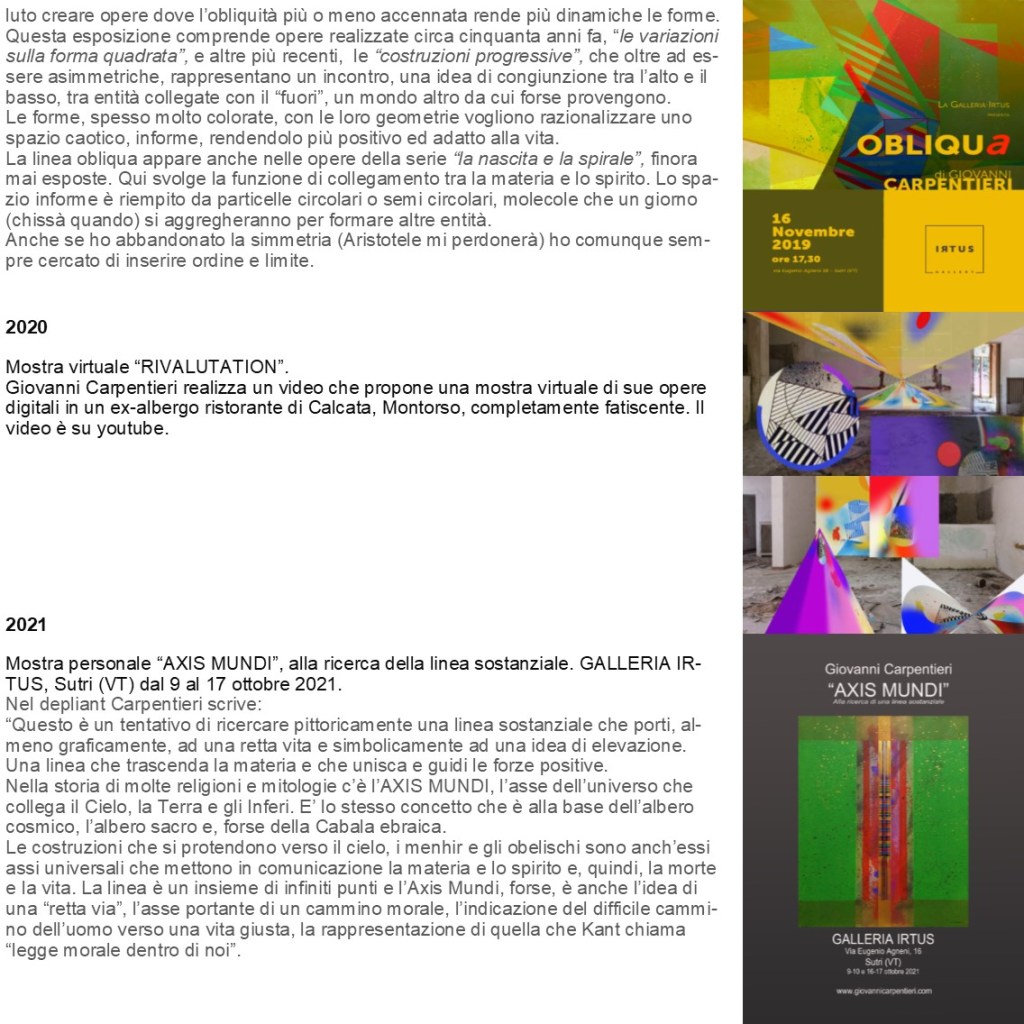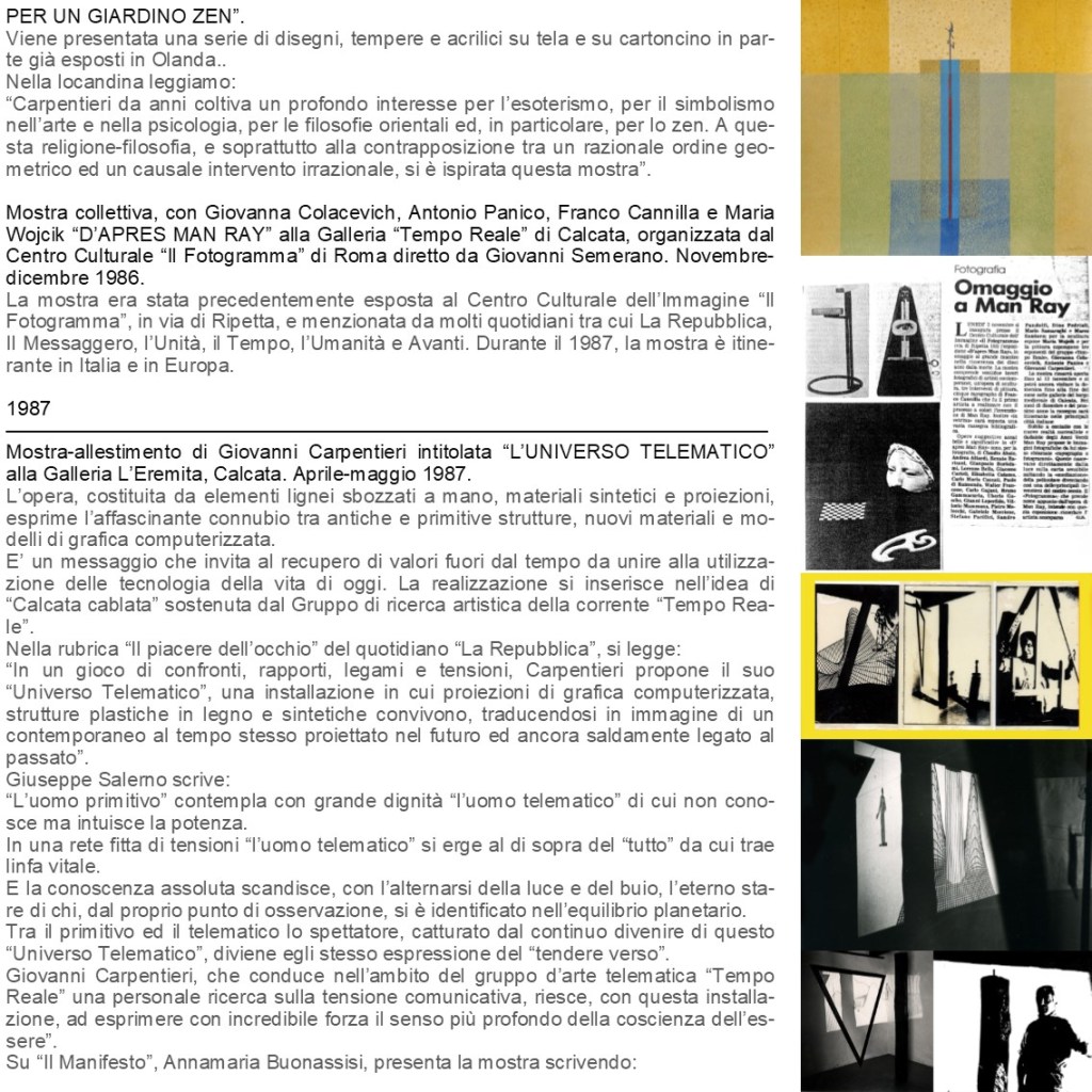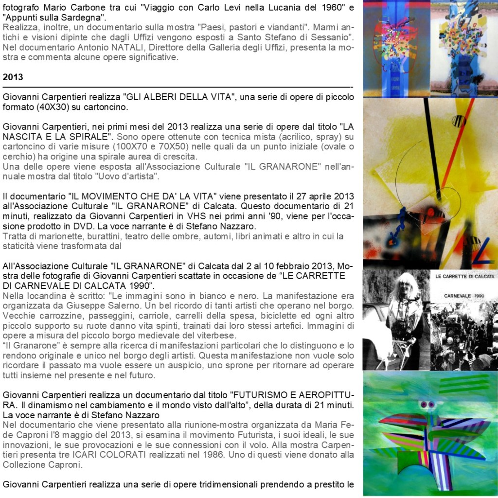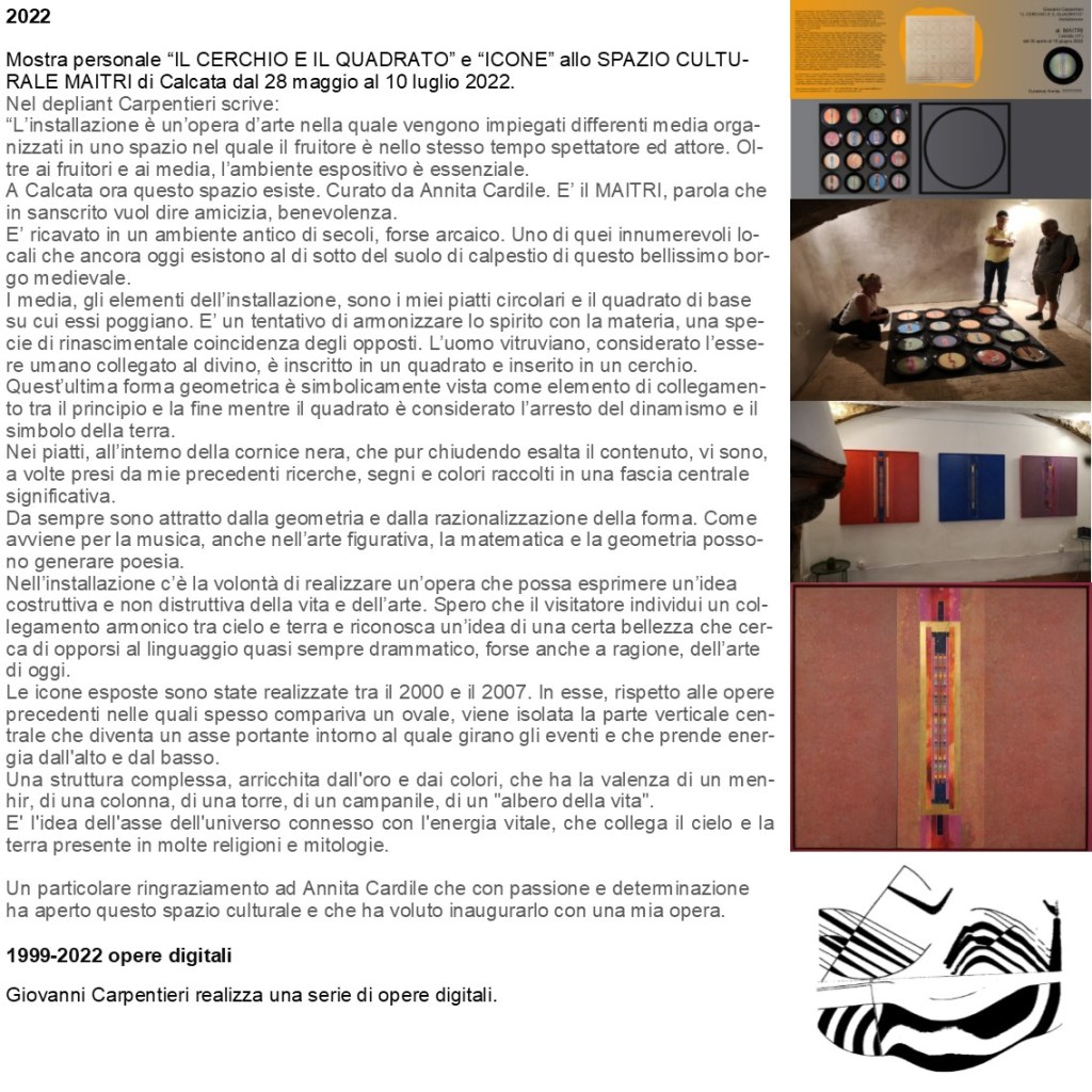 Giovanni Carpentieri. UN PERCORSO D’ARTE Mostre, critiche, opere dal 1968.