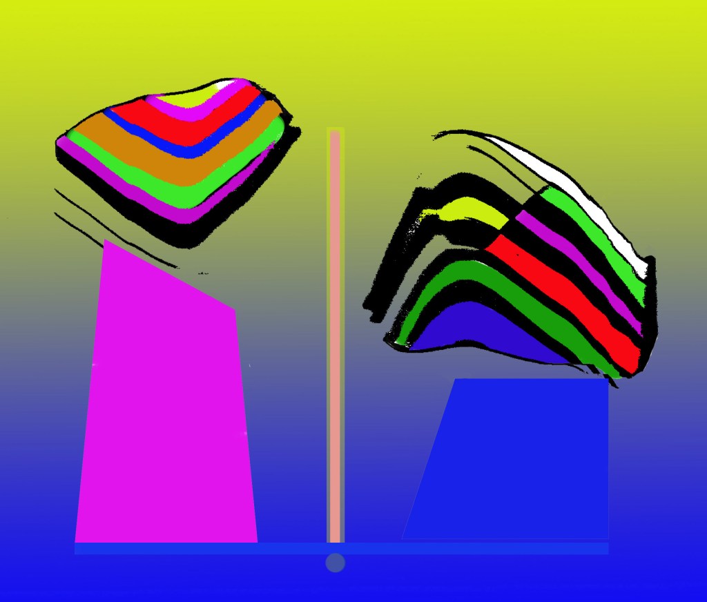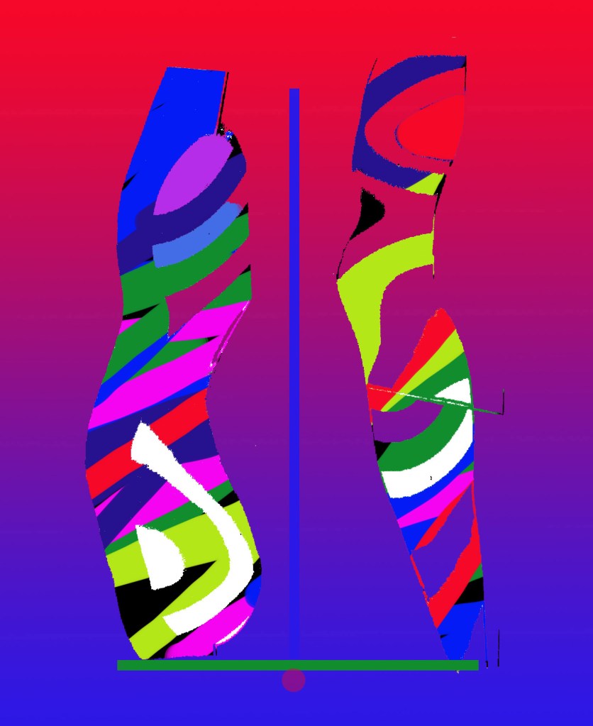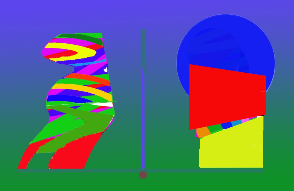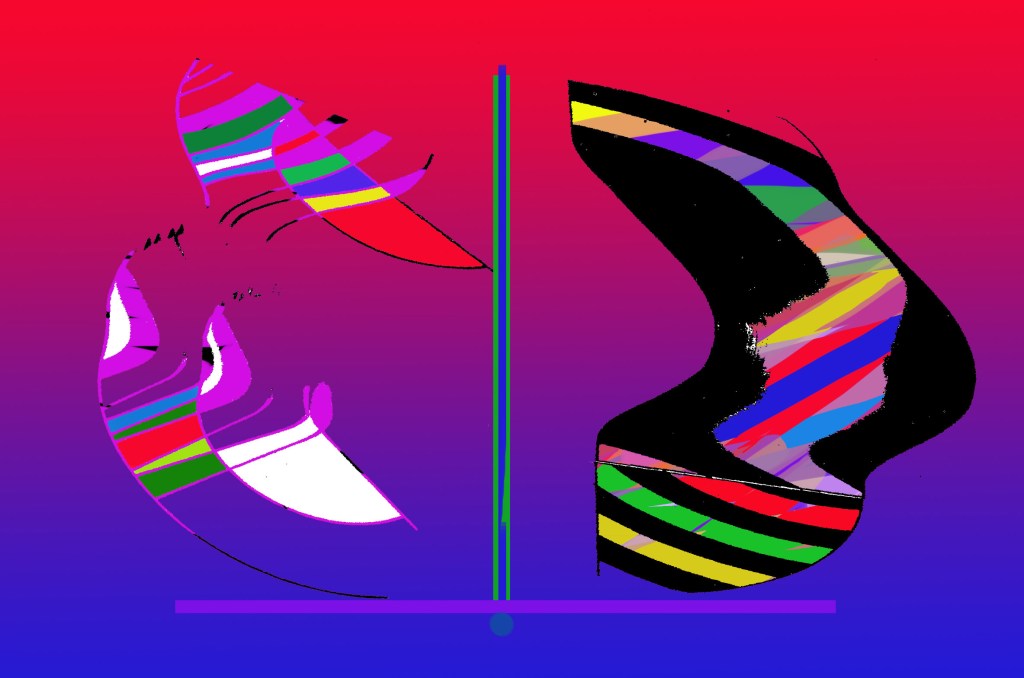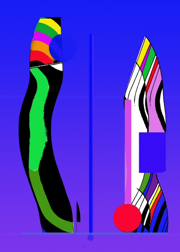 Sono opere digitali realizzate tra la fine del 2021 e l’inizio del 2022. L’idea è semplice: due forme-forze non proprio simili si contrappongono ma nello stesso tempo (e con non poche difficoltà) si equilibrano.