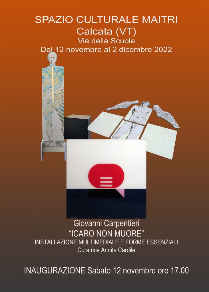 I recenti lavori di Giovanni Carpentieri annunciano esigenza e desiderio di dialogo: tra sé e il proprio percorso artistico dedicato alle pratiche pittoriche, tra il proprio lavoro e il pubblico, che viene coinvolto all’interno di un’installazione ambientale, tra passato e presente, nel desiderio di rielaborare il già fatto per dare inizio a una ricerca creativa fondata sul mezzo digitale.