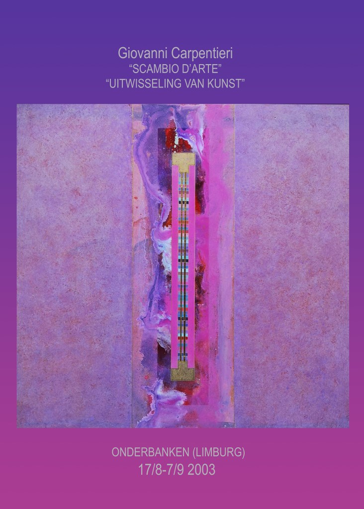 Il recente lavoro di Giovanni Carpentieri continua a dialogare felicemente con la storia dell’arte, conosciuta ma soprattutto interiorizzata, di cui contiene l’esperienza della pittura astratta come le molte pratiche combinatorie, oltre ai linguaggi digitali. Significativo in tal senso è il parallelismo che si stabilisce tra il suo percorso e quello di uno dei più grandi maestrieuropei del nostro secolo, Gerhard Richter, sia nei termini di sperimentazioni di linguaggi che, soprattutto, di tensione al processo creativo infinibile.