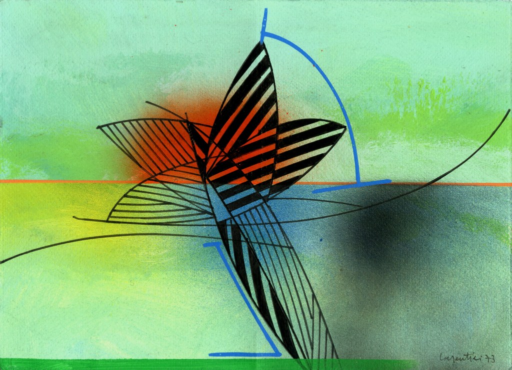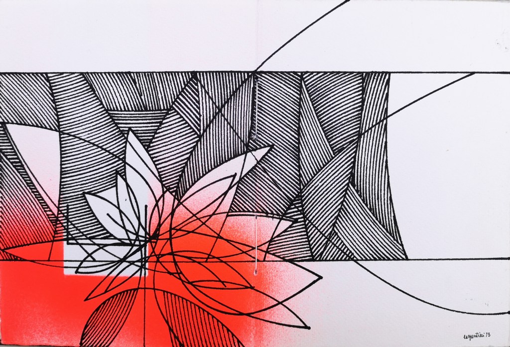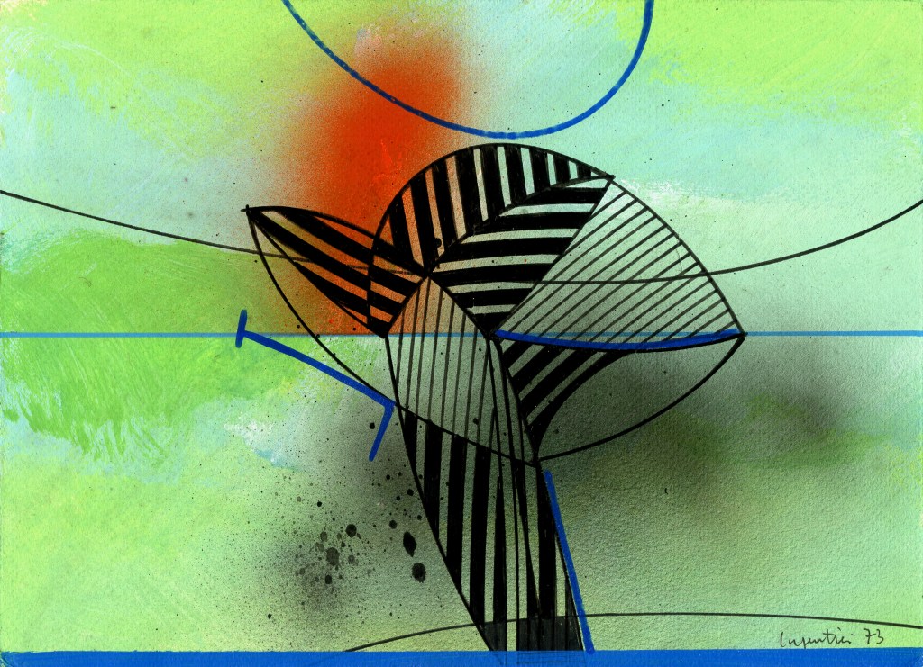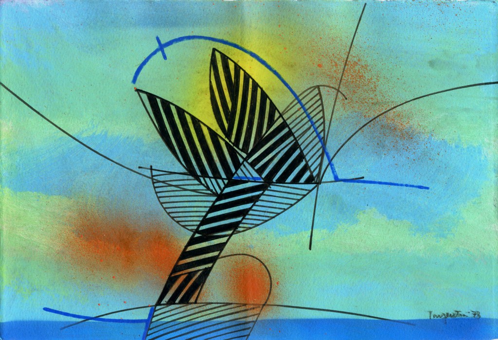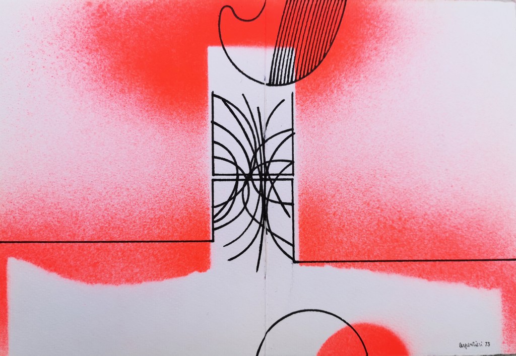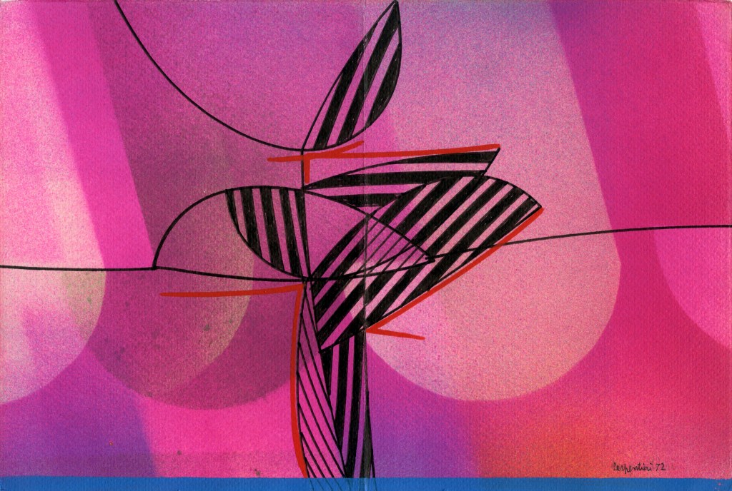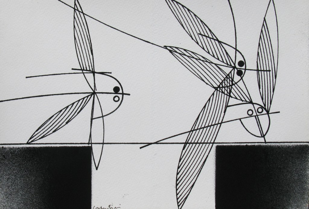 Sono opere di piccolo formato (25cmX17cm) realizzate dal 1966 ai primi anni ’70 su cartoncino con china, spray e colori acrilici. Sono piante, uccelli, forme geometriche varie realizzate con china, colori acrilici e spray.