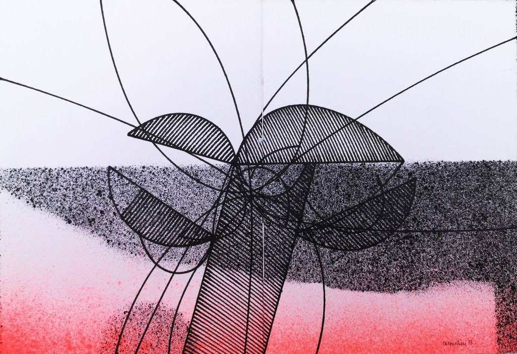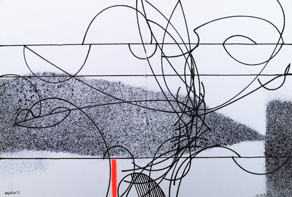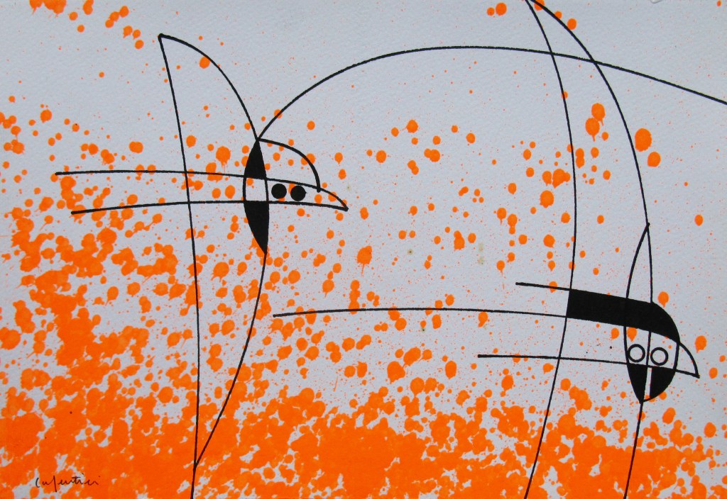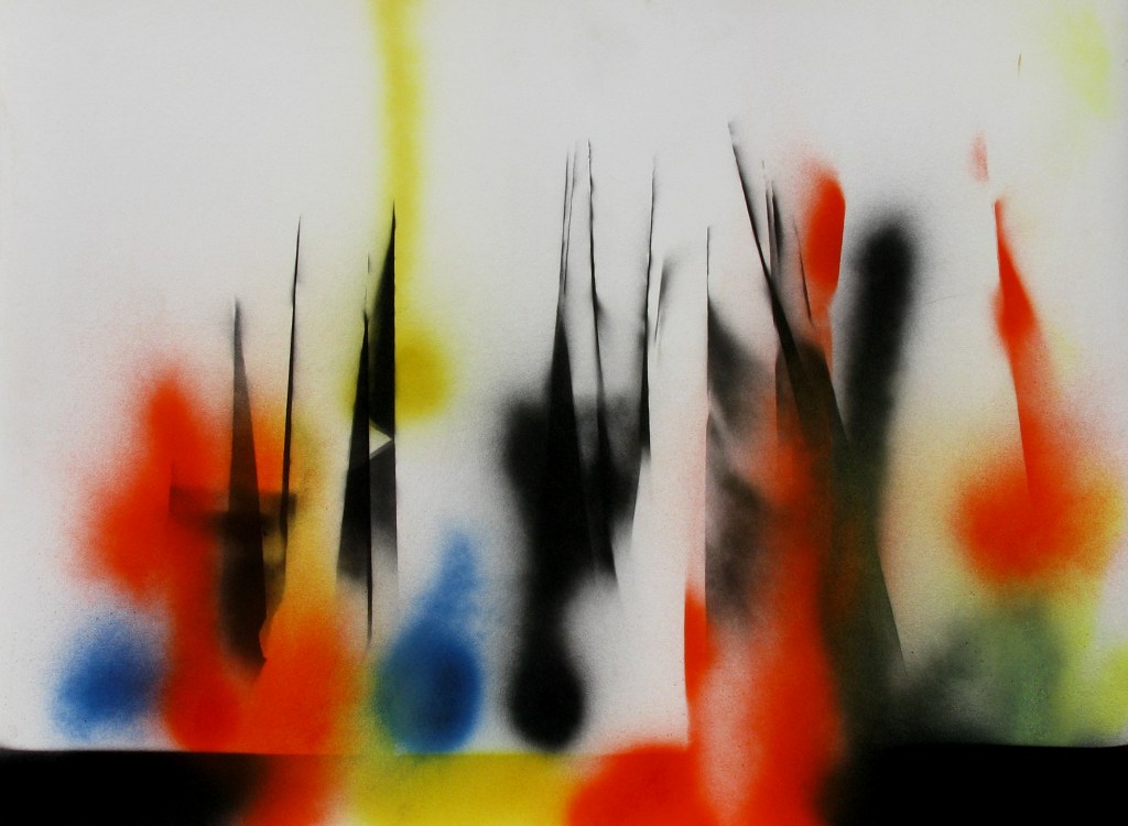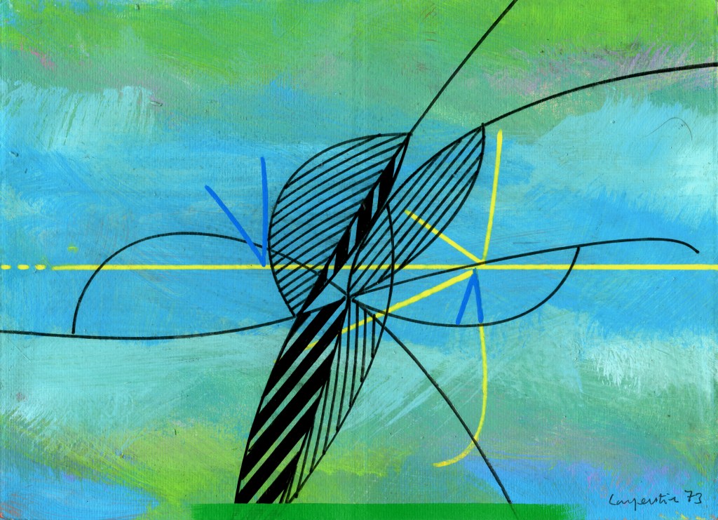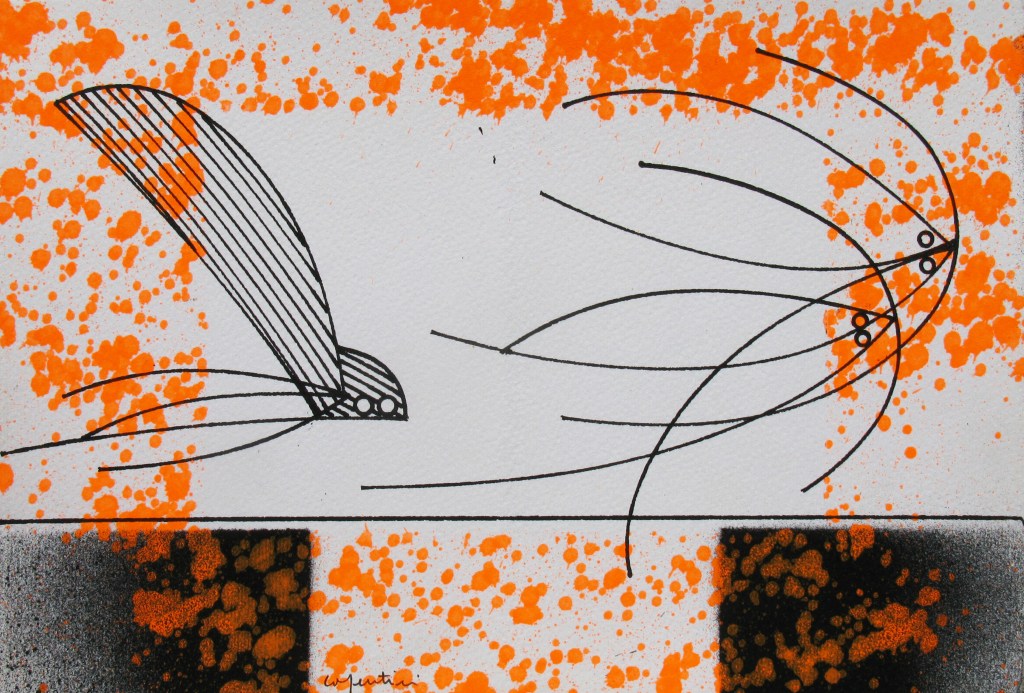 Sono opere di piccolo formato (25cmX17cm) realizzate dal 1966 ai primi anni ’70 su cartoncino con china, spray e colori acrilici. Sono piante, uccelli, forme geometriche varie realizzate con china, colori acrilici e spray.