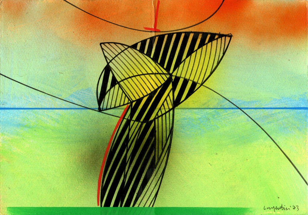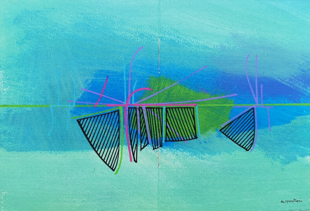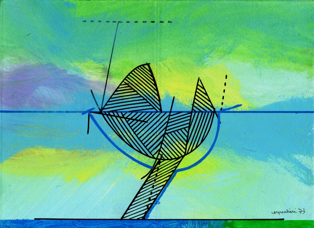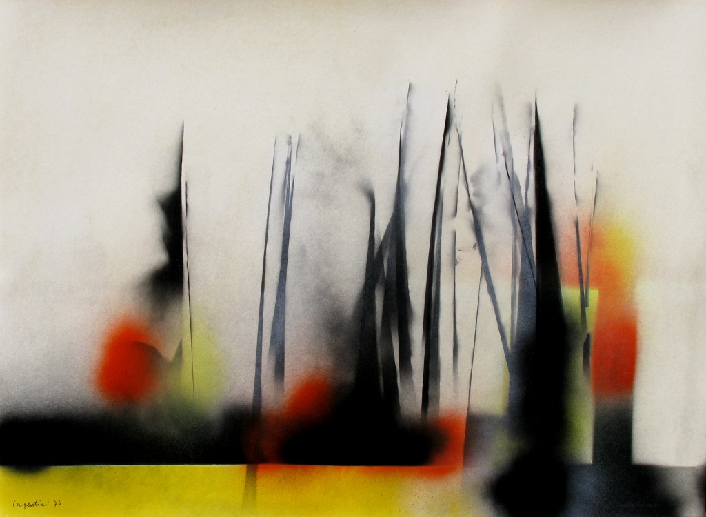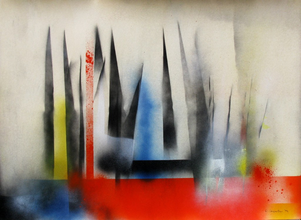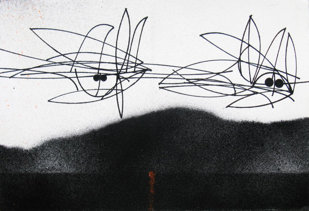 Sono opere di piccolo formato (25cmX17cm) realizzate dal 1966 ai primi anni ’70 su cartoncino con china, spray e colori acrilici. Sono piante, uccelli, forme geometriche varie realizzate con china, colori acrilici e spray.