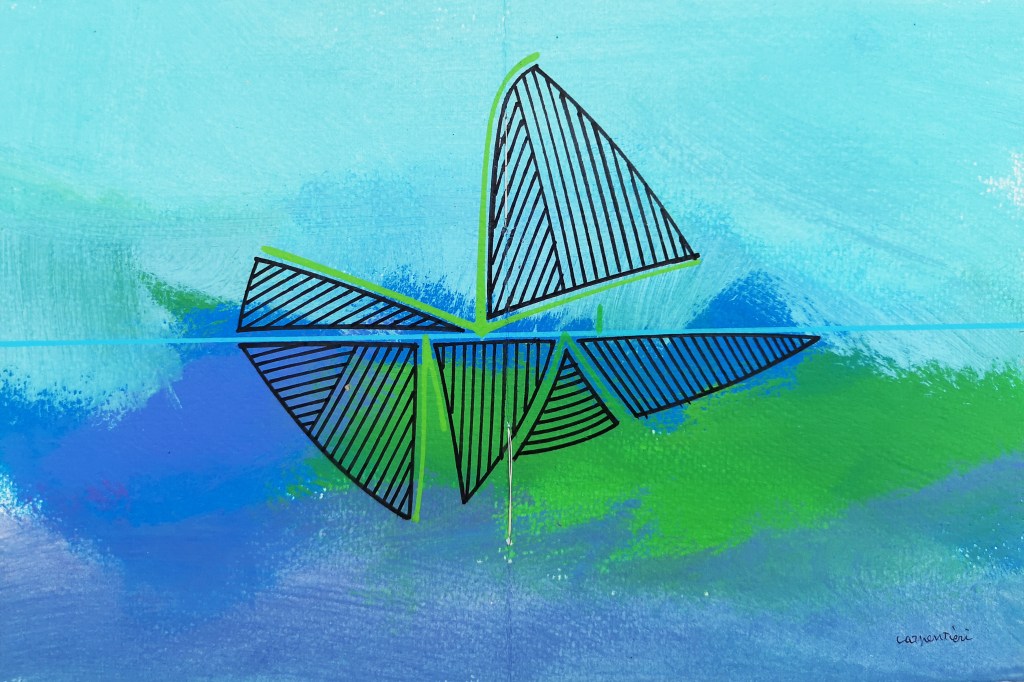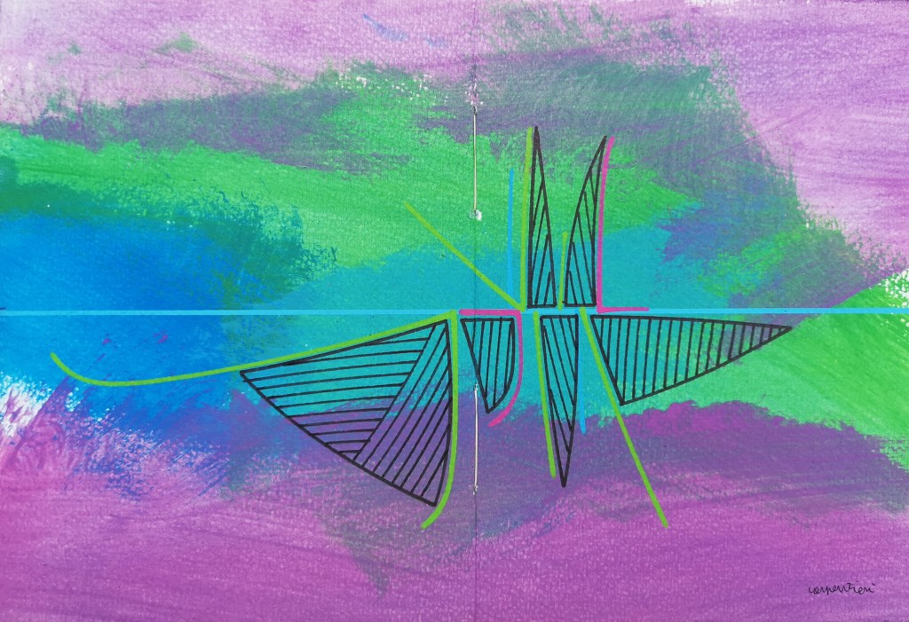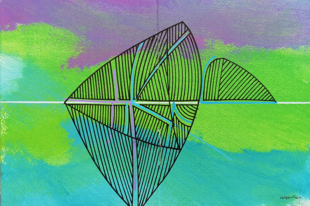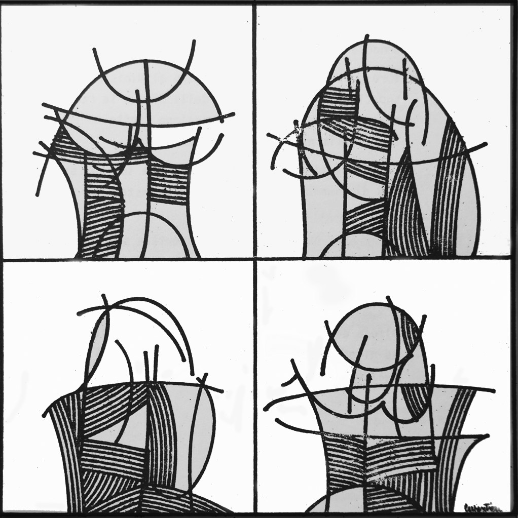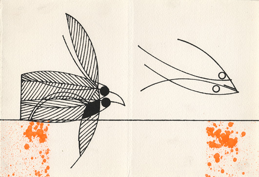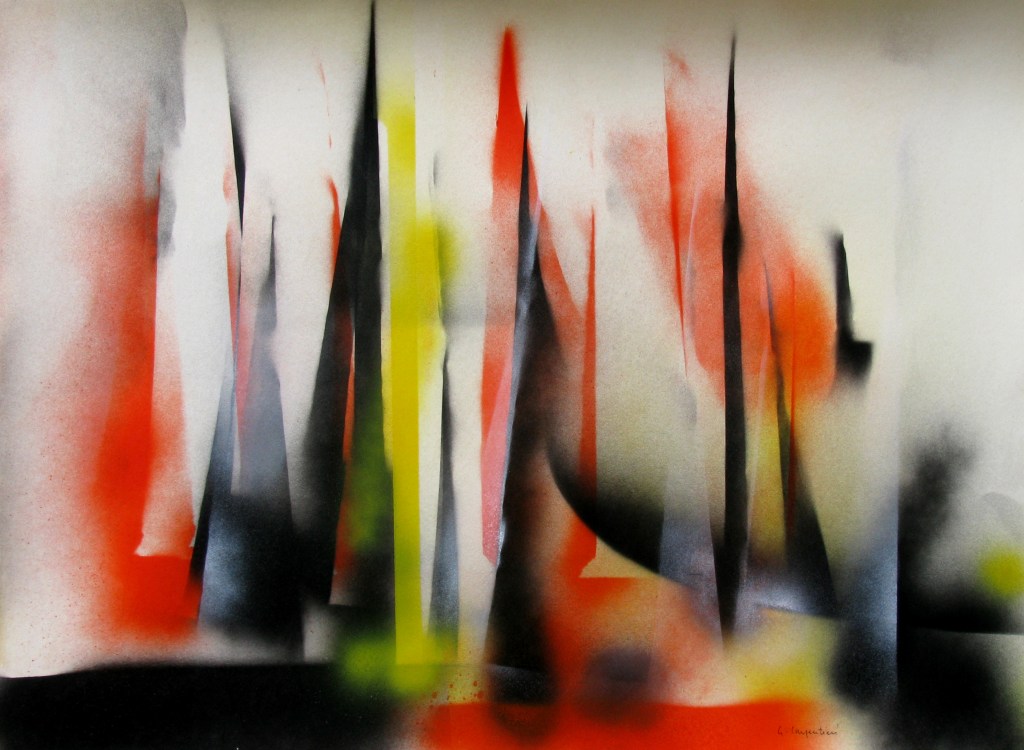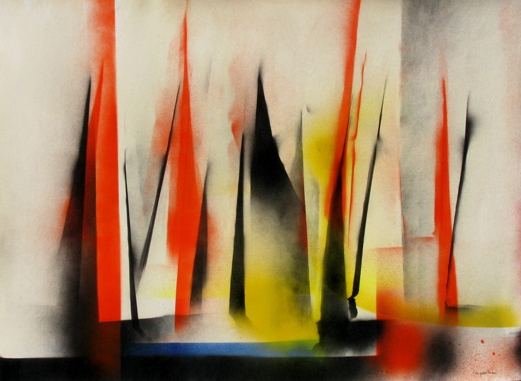 Sono opere di piccolo formato (25cmX17cm) realizzate dal 1966 ai primi anni ’70 su cartoncino con china, spray e colori acrilici. Sono piante, uccelli, forme geometriche varie realizzate con china, colori acrilici e spray.