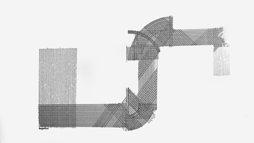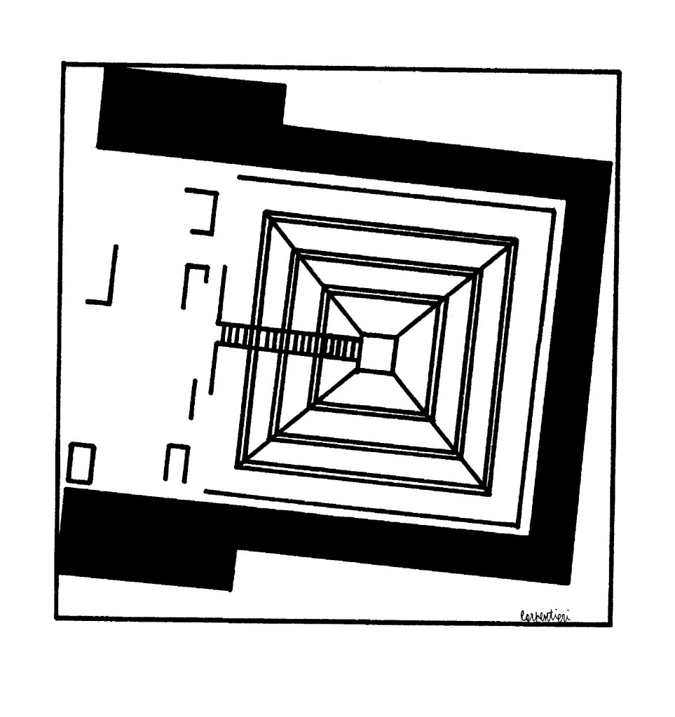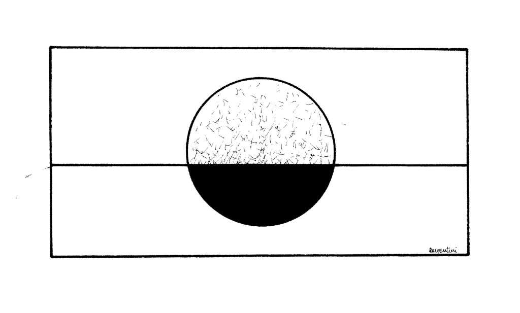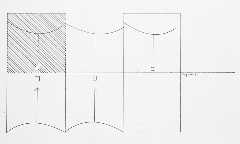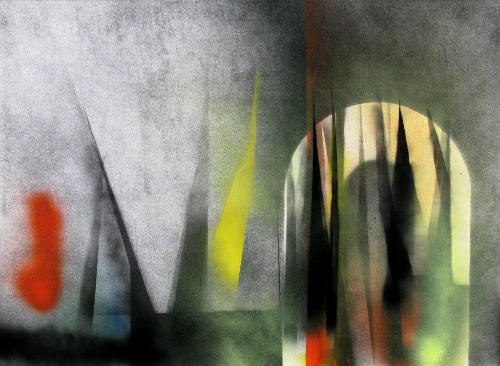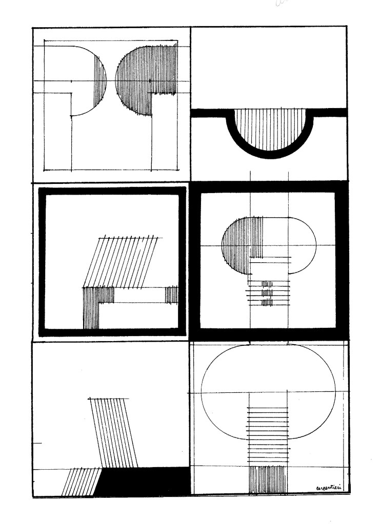 Un giorno del 1966/67, nello studio di Lucio Fontana a Milano, Carpentieri vede che l’assistente giapponese del maestro mette della garza nera nella parte posteriore dei tagli. L’idea, in queste opere, è, al contrario, di spruzzare del colore nero spray sul cartoncino 70X50 attraverso tagli su fogli di giornale. Nelle opere vi è già una idea prevalente di verticalità e una qualche energia è data dalla imprevedibilità dell’atto gestuale.
