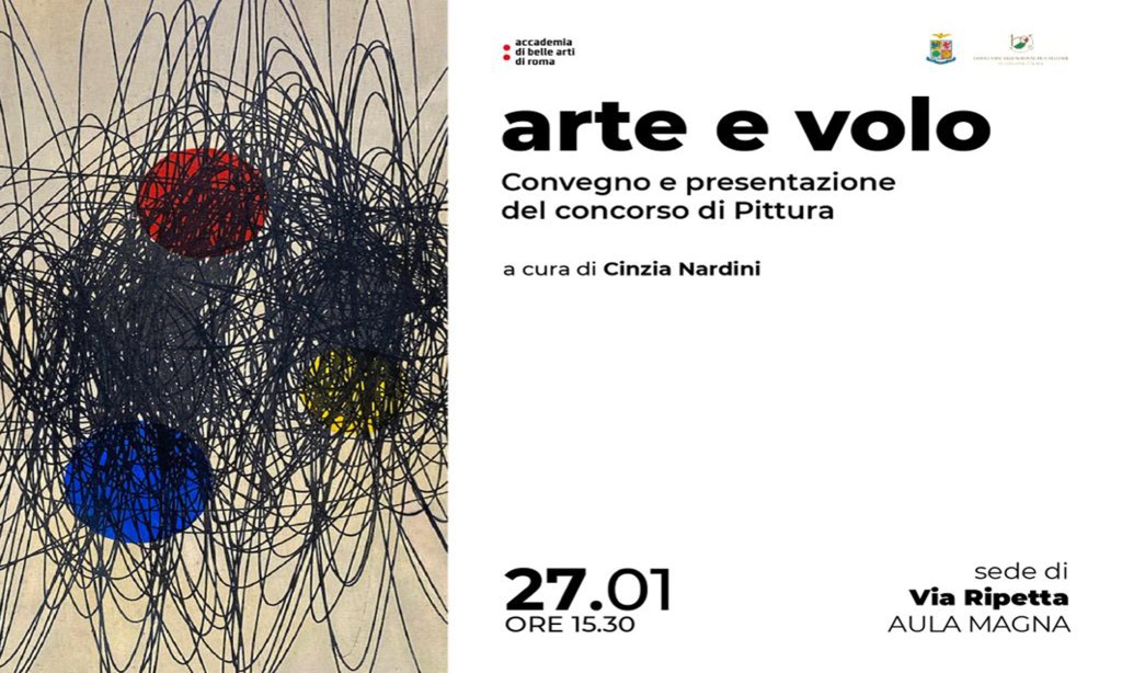 “Roberto Crippa, un maestro un amico” e “Icaro non muore” in occasione della presentazione del concorso “arte e volo” alla Accademia di Belle Arti di Roma. 2023.