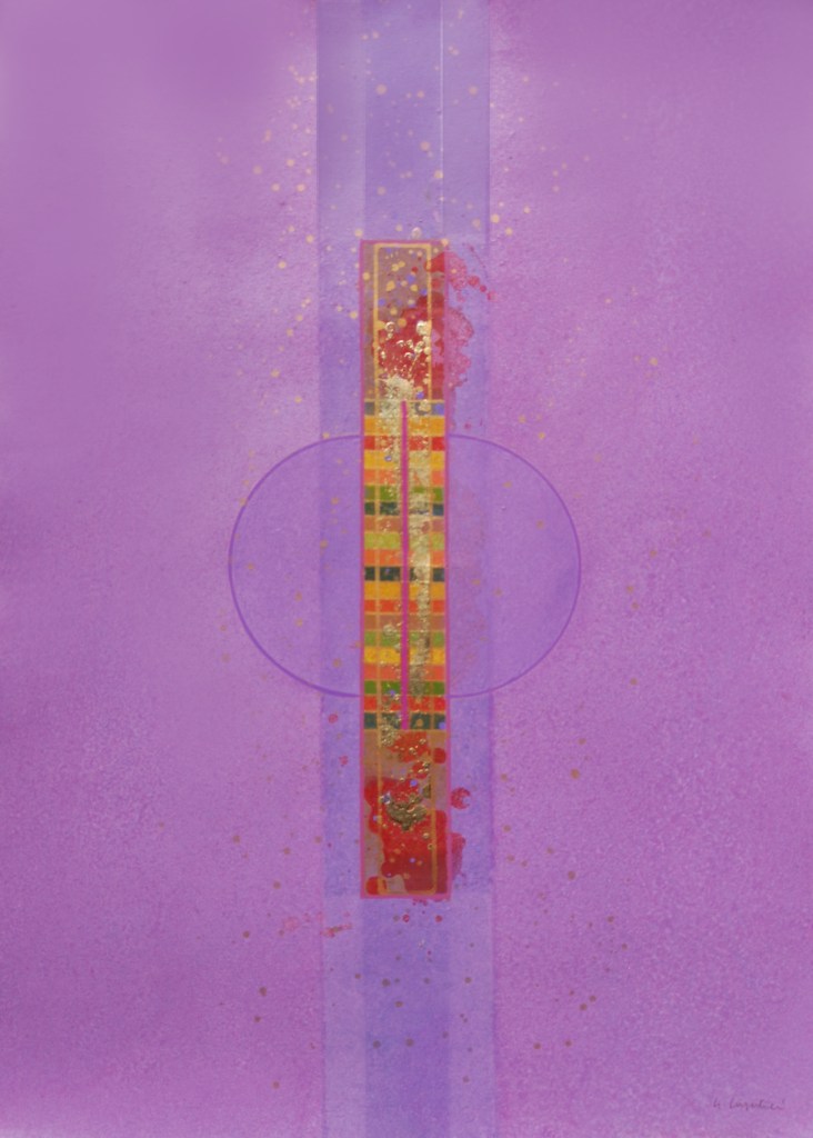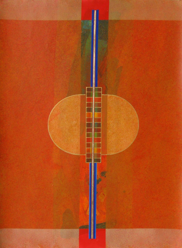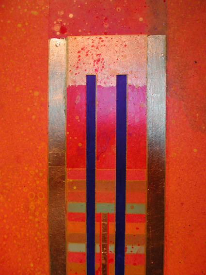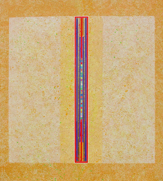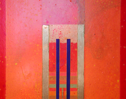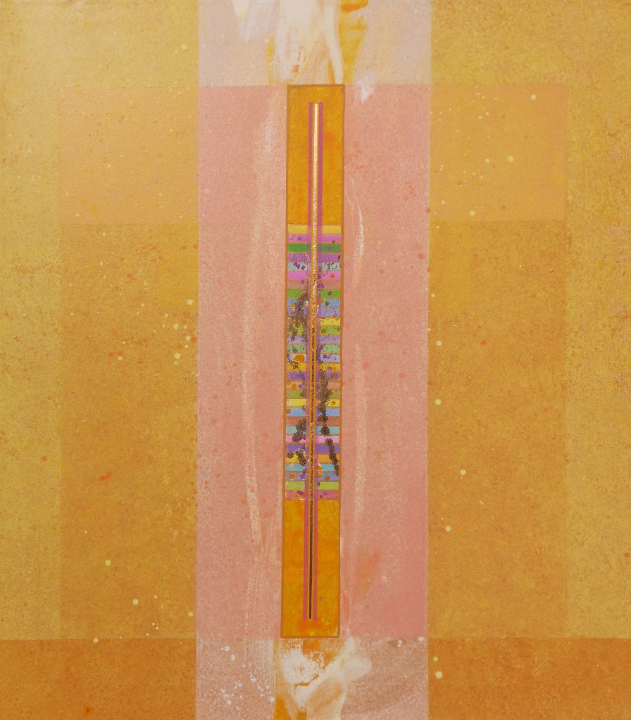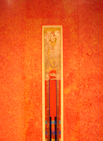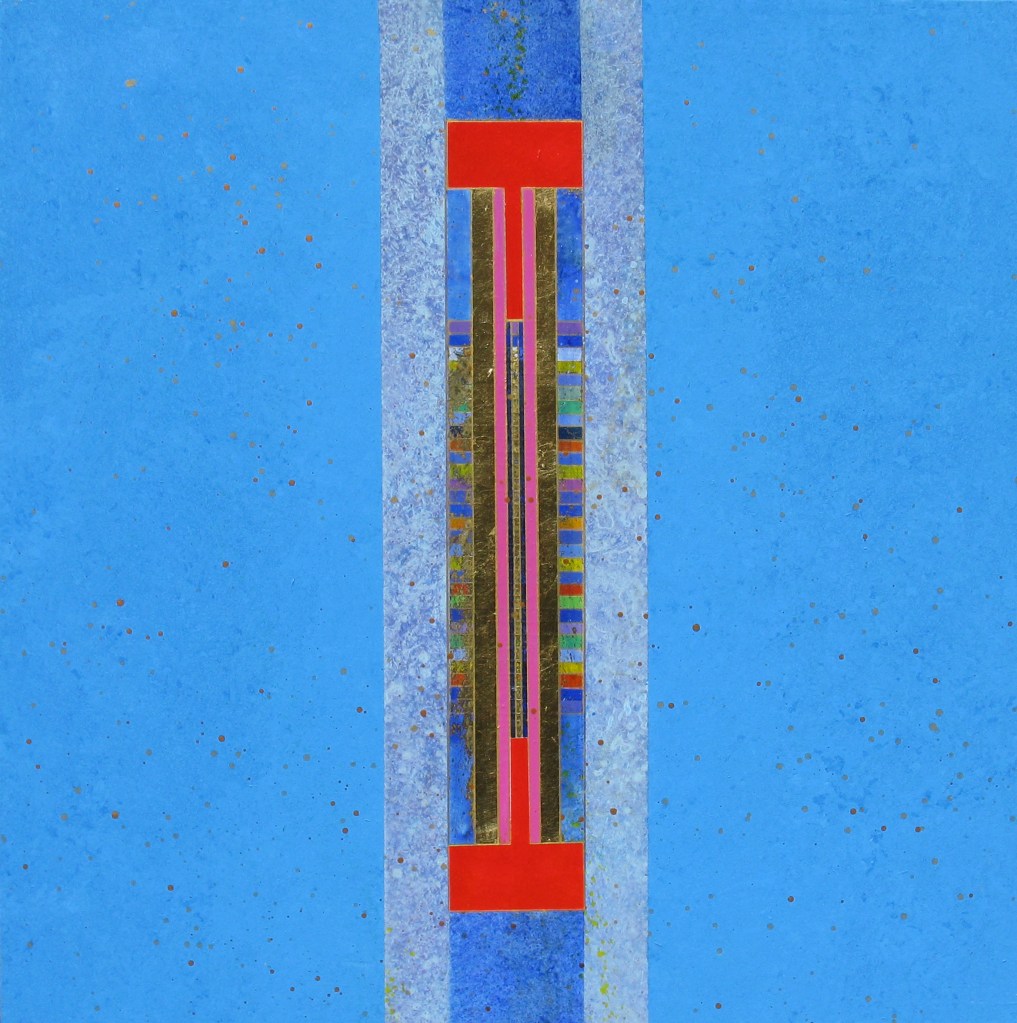 Su queste superfici di varie misure, percorse da una tensione generata dal colore, dalla materia e dal luccicare dell’oro, si fondono la geometria e la macchia, il sacro e il profano. L’idea delle strutture geometriche primarie e della verticalità come connotazione ascensionale sono state sempre presenti nella ricerca artistica di Giovanni Carpentieri. Una verticalità associata alla crescita, alla vita e ad una visione positiva del mondo e del divenire