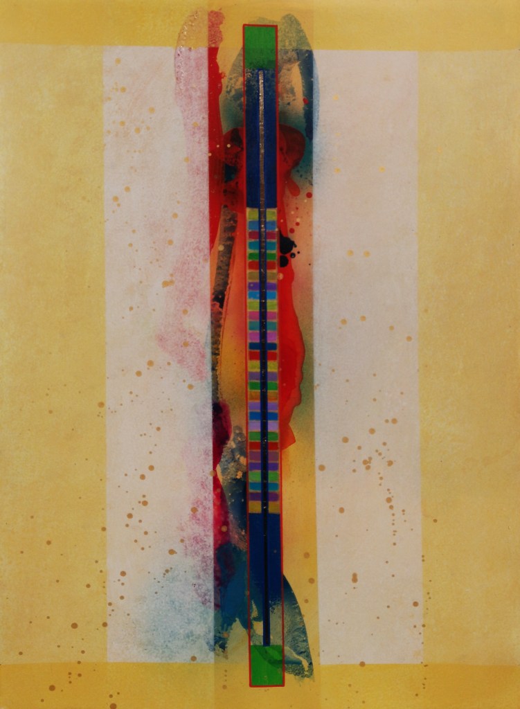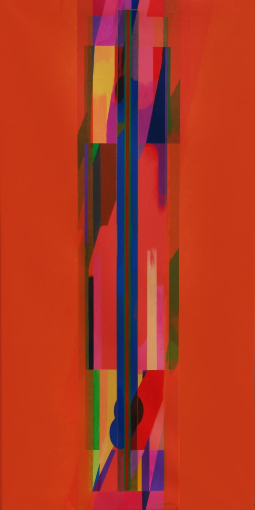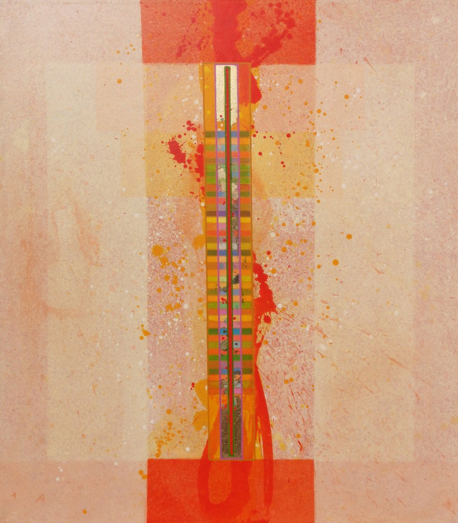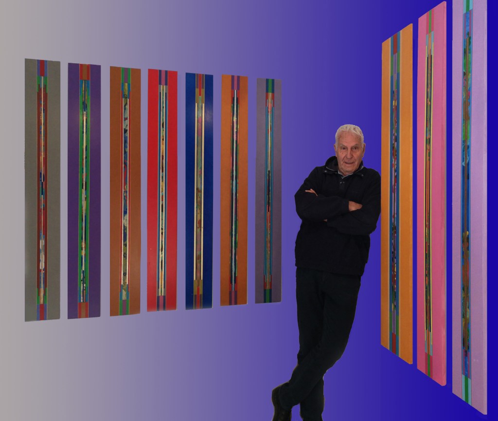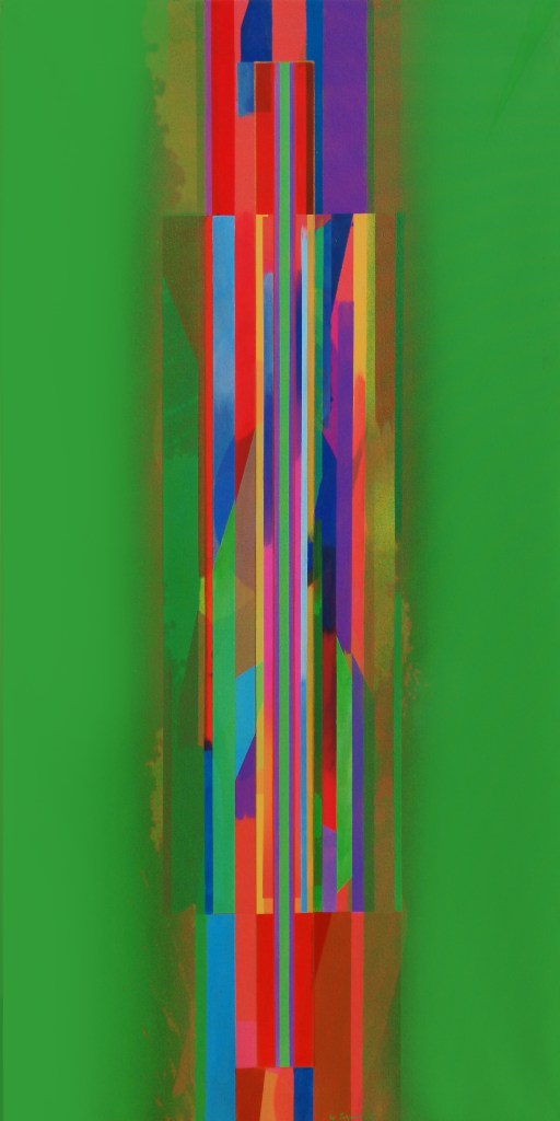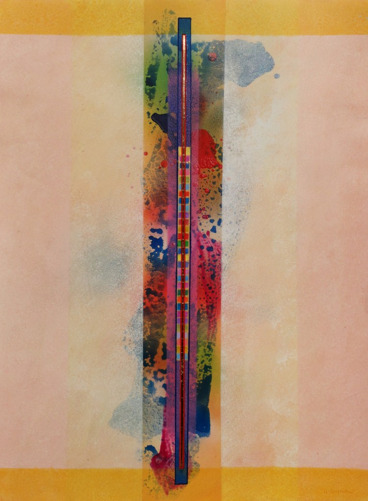 Nei “VERTICALI” compare appunto solo questa fascia significante. La simbologia del verticale è presente fin dalla preistoria: sono le stele, i menhir, le pietre fitte, gli obelischi, le colonne sacre. “L’axis mundi” degli alchimisti medievali, è un asse immaginario che congiunge la terra e il cielo, la materia e lo spirito, intorno al quale ruota il tempo e la vita generando la ciclicità degli eventi e “l’albero della vita o albero cosmico” che, traendo linfa vitale dalla terra e dal cielo, congiunge gli opposti in un continuo susseguirsi di cicli.