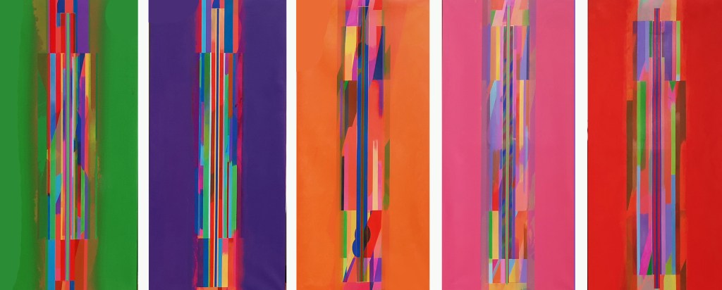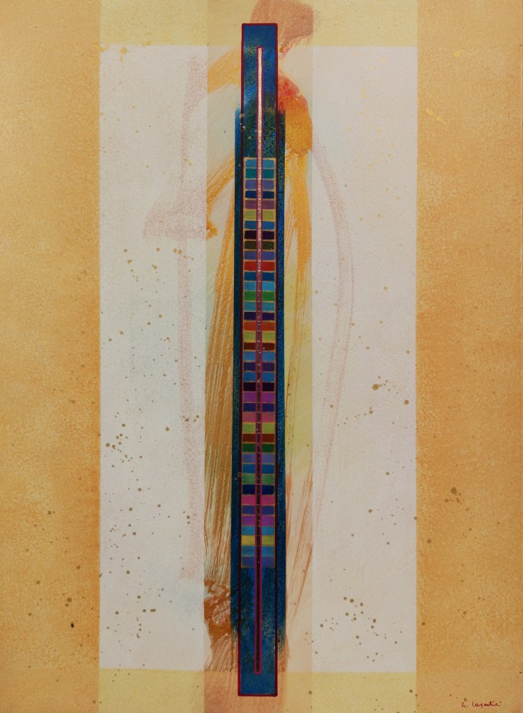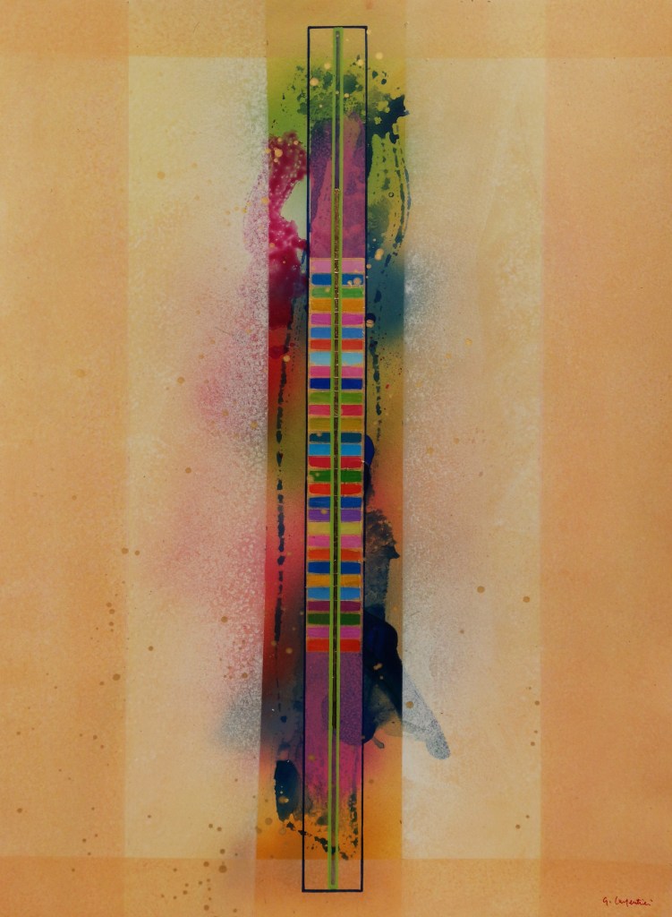 Tra gli elementi “verticali” su tavola realizzati da Giovanni Carpentieri vi sono quelli di 160X20 centimetri componibili e variamente colorati (con inserite strisce d’oro) e nascono nel 2006 per una mostra alla Galleria REM di Jabeek (Olanda). Possono essere accostati a distanze variabili e variati di posizione per ottenere composizioni diverse.