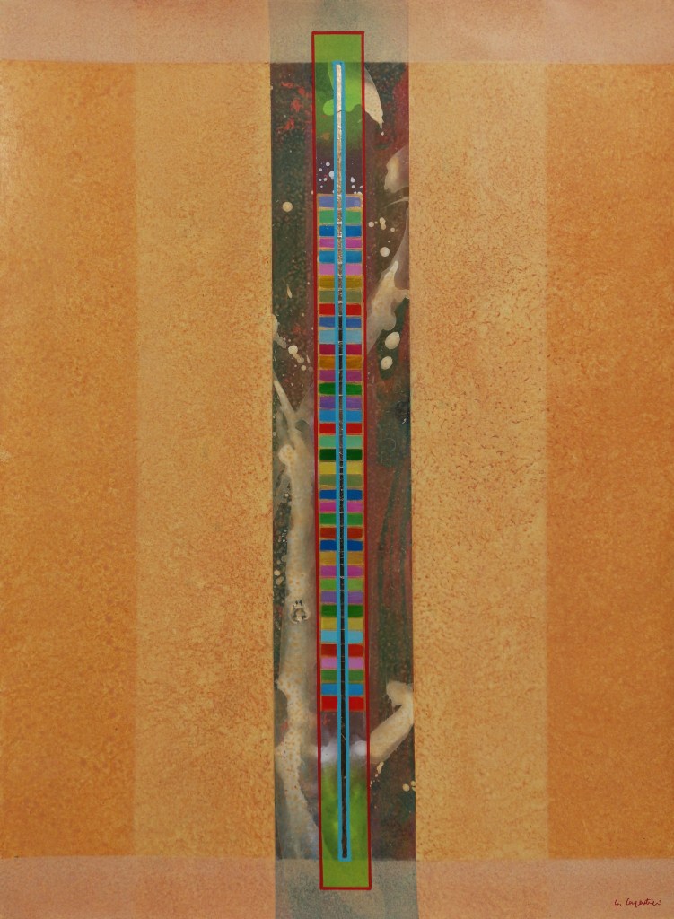Una ricerca realizzata con colori acrilici su tela di 140X70 centimetri di dimensione.