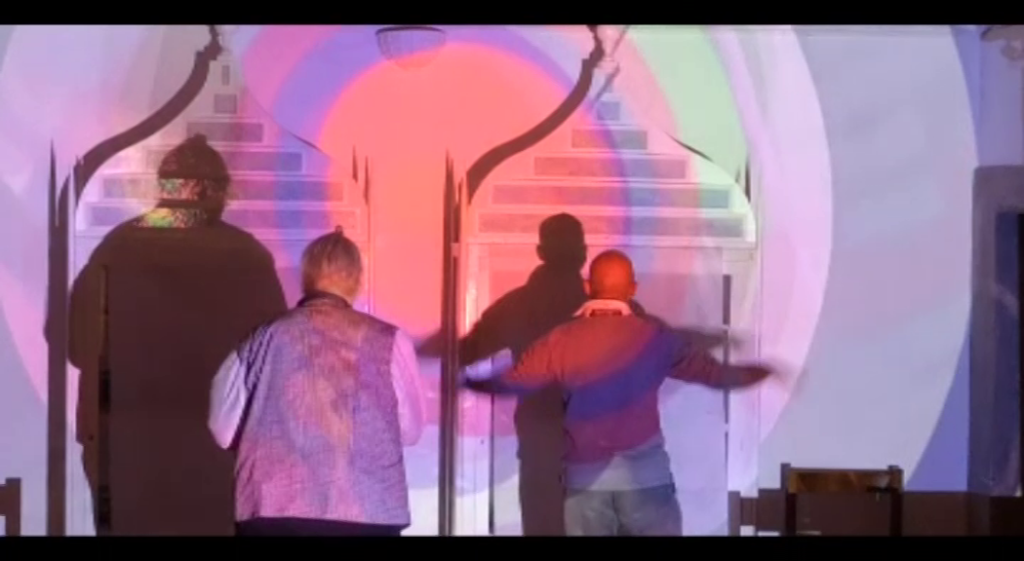 La proiezione multimediale, che accompagna la mostra, con i soli che si sovrappongono, si integrano e si compensano, è un esempio di vita che scorre nel fluire tra materia e spirito. Un momento dinamico nel quale stabilità e mutamento sono portatori di gioia. L’intento è che il colore , che rappresenta l’energia vitale che permea tutto l’universo, avvolga lo spettatore e lo renda parte attivo dell’esposizione.
