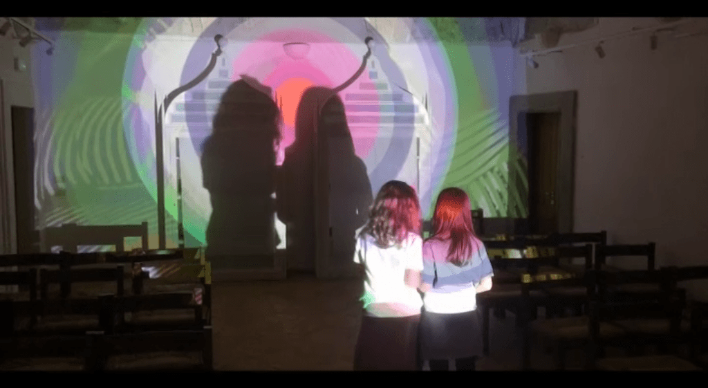 Installazione multimediale realizzata in occasione della mostra “CHROMOPIXEL tra memoria e nuove visioni” al Palazzo baronale degli Anguillara di Calcata (VT) dal 27 aprile al 4 maggio 2025.