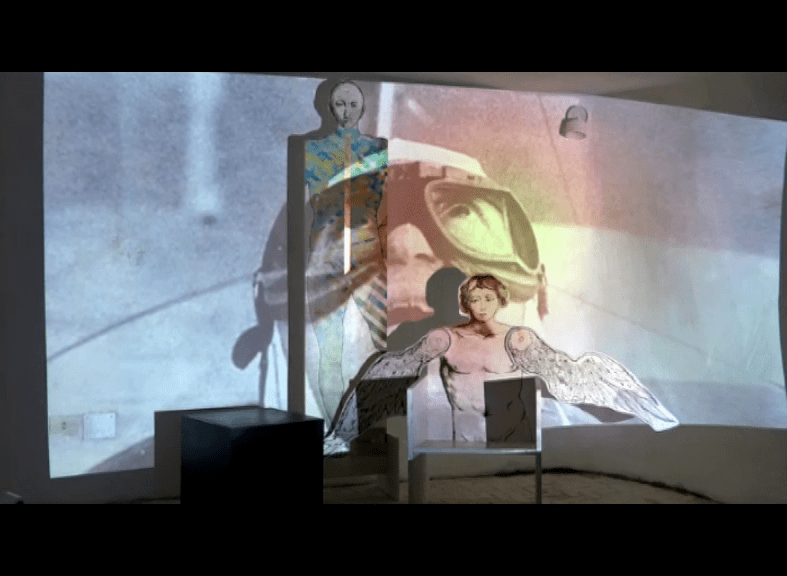 Nella installazione di Giovanni Carpentieri viene proiettato, su un sfondo che continuamente cambia, un video nel quale le immagini, tratte dalle opere pittoriche di Le Corbusier, sono sovrapposte le une alle altre in un insieme di forme e colori trasformati da effetti video. Ciò che vediamo, in continua trasformazione, ci riporta all’idea di una realtà in perenne divenire. Tutto cambia. Emozioniamoci davanti all’attimo irripetibile, prendiamo al volo la piccola felicità dell’attimo fuggente.
