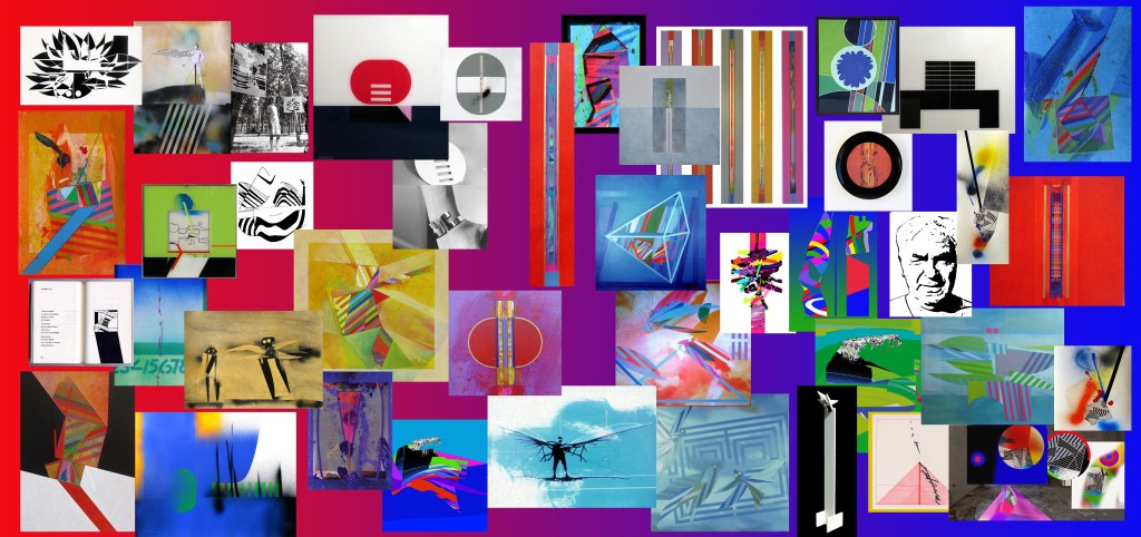 Il titolo mette in risalto una ricerca che coinvolge il passato e il presente; la geometria e il colore delle mie opere del passato e le nuove visioni vicine alle attuali tecniche di rappresentazione dell’immagine.