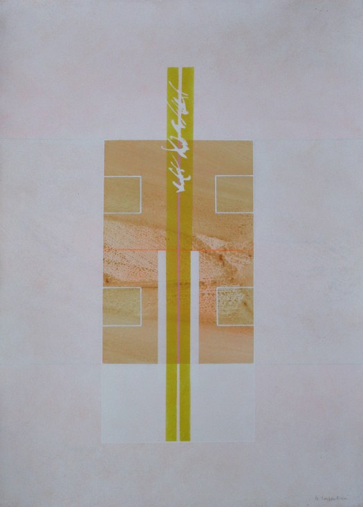 La struttura è razionale e poetica. Un segno gestuale, un gesto di liberazione si sovrappone e distrugge una struttura mentale costruita con razionalità”.