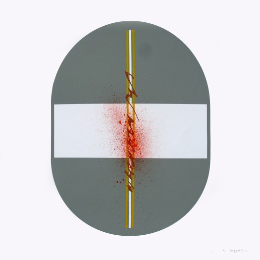 In questa serie, realizzata tra il 1974 e il 1975, gli interventi con colori acrilici e spray (la parte emozionale, gestuale) hanno come base forme ovali serigrafate di vari colori (la parte razionale, mentale) . Questa forma, tra l’ovale e l’ellittica, è stata ripresa da Carpentieri in altre opere successive tra cui le maioliche d’arte .