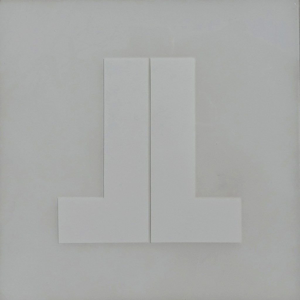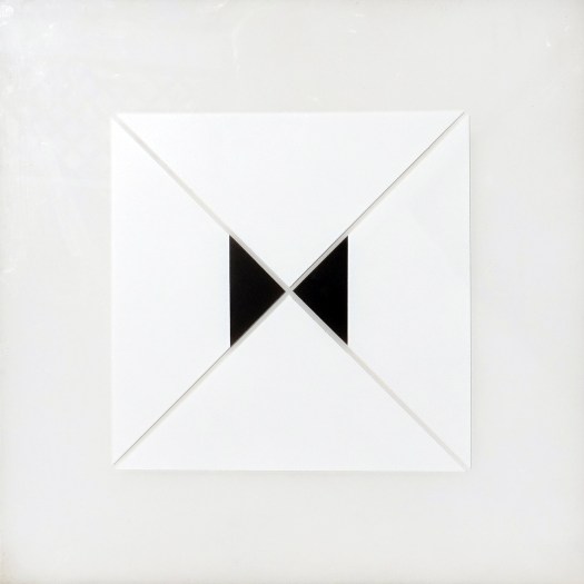 Molte delle quali vennero eseguite su plexiglas (bianco su bianco e bianco e nero), altre su tela o cartoncino. Sono le “FORME ESSENZIALI”, quasi tutte simmetriche nelle quali si ricerca un equilibrio tra le geometrie pure e lo spazio. Le opere su plexiglas presentano una certa tridimensionalità poichè le forme in primo piano sono staccate dal fondo (spesso bianco su bianco o bianco su nero o viceversa).